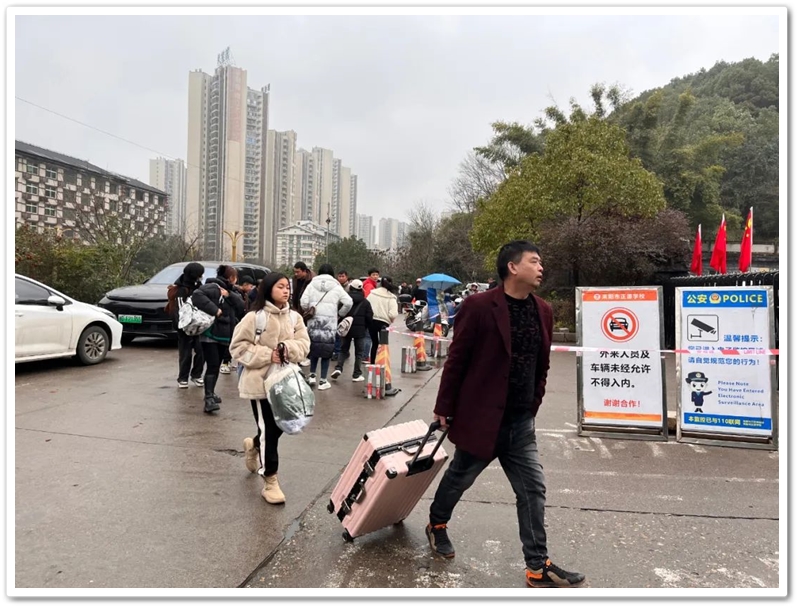今年的寒假时间稍显宽裕,高中生已于初六、初十陆续进校,小学、初中分别安排在27日上午和下午错峰报到,初中部四个年级又由南门和西门指定两条就近路线入校,校门口持续多年的开学堵车场景终于极大缓解。今年开学入校“最后一公里”,很是轻松惬意。