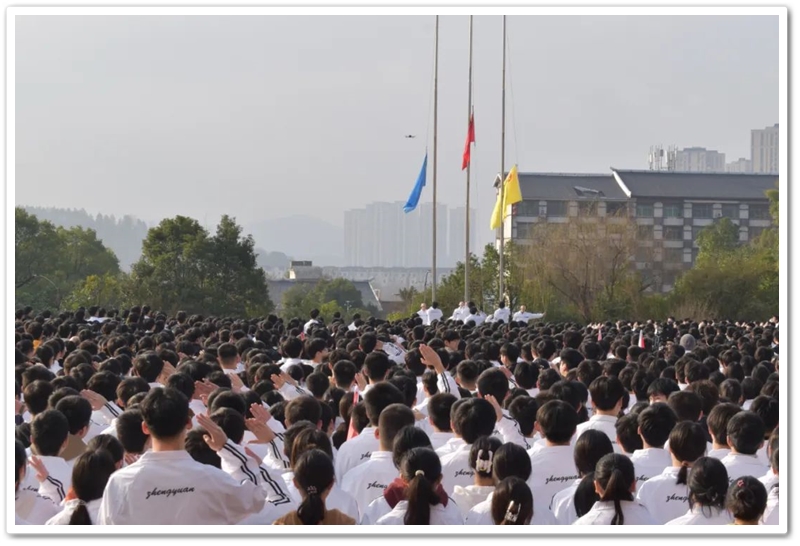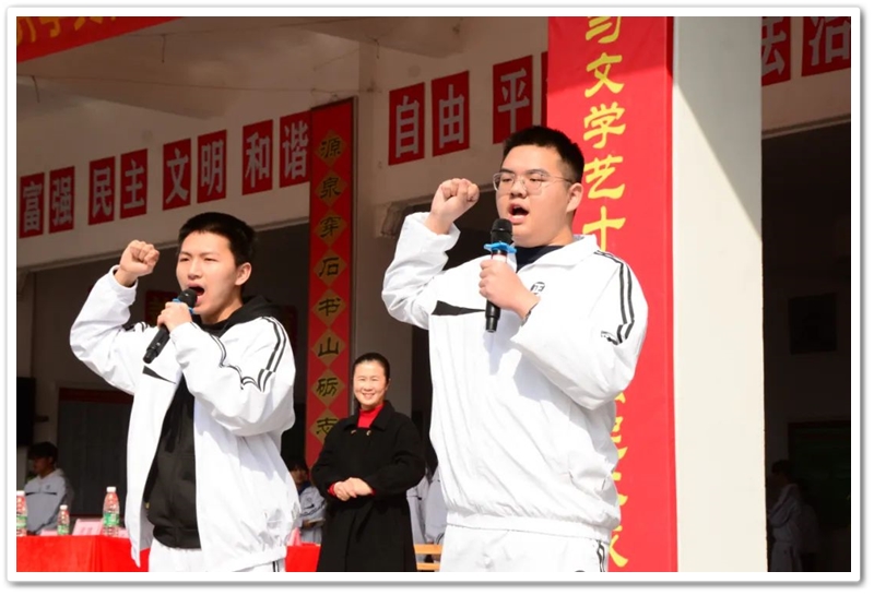誓师过后,全体师生起立,在校办公室主任朱明之主持之下,万人齐呼,为高三加油,为正源呐喊: