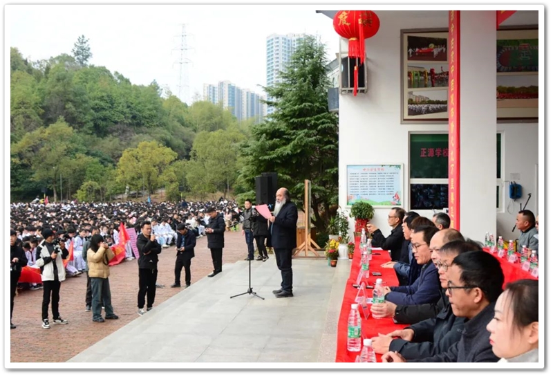 致辞中,毛书记代表学校党支部向全体师生员工致以最美好的祝愿;充分肯定了过去的一年里,学校在党建工作、拔尖人才培养、德育创新、办学条件改善等方面取得的成绩。毛书记指出,2012年首届2+4模式正源学生参加高考,一炮走红,成功夺得衡阳市理科状元,而今年的高考数学命题改革,又是正源2+4大显身手凸显优势的大好机遇,他期待今年龙年高考再一次一飞冲天,寄语同学们牢记初心使命,顽强拼搏,努力跑好正源学校的高考接力赛,为正源学校20年周年校庆献上一份厚重的贺礼。