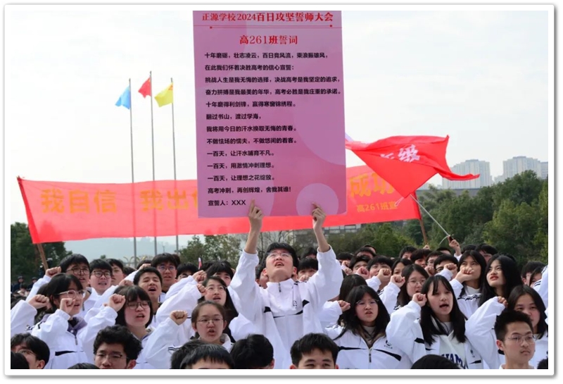 高三全体教师庄严宣誓:“为了同学们的大学梦想,为了家人们的殷切期望,为了我们正源的灿烂辉煌,我们用热情关爱每一位学生,用乐观面对每一个困难,用勇敢迎接每一次挑战,我们意志坚定,作风顽强,信心百倍。请领导放心,请同志们放心,请学校放心,携手共进,再创辉煌!必胜必胜必胜!”