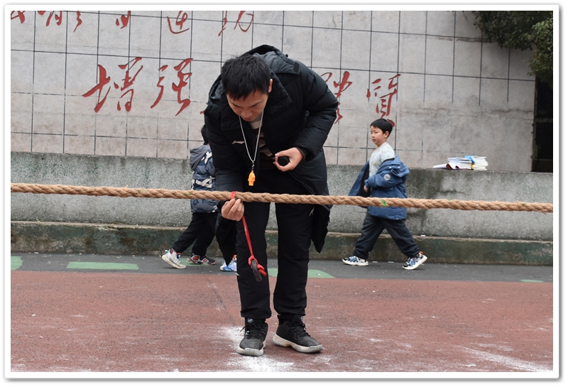 比赛中,在班主任的带领下,各班同学共同努力,大家劲往一处使,绳往一头拉。无论是场上还是场下,气氛都异常激烈。场下的同学个个热情高涨,呐喊助威给比赛增添了一抹亮色,每一声呐喊都带来一股力量! 在旁边拉拉队的呐喊助威下,每个队员都鼓足了劲,涨红了脸,抓紧绳子,全力以赴,努力争夺。加油声、叹息声、欢呼声,此起彼伏,好不热闹。比赛也牵动了在旁老师的心,他们纷纷在一旁呐喊助威,呐喊声中,师生融为一体,彼此心贴得更紧。