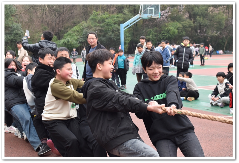 在万物复苏,生机盎然、春光明媚的三月,为了丰富同学们的校园文化生活,提升同学们的综合素质,培养同学们的团结协作精神,以及扎实推进校园阳光体育运动,正源学校小学部六年级于2024年3月7日下午在小学部运动场举行了一场别开生面的拔河比赛。