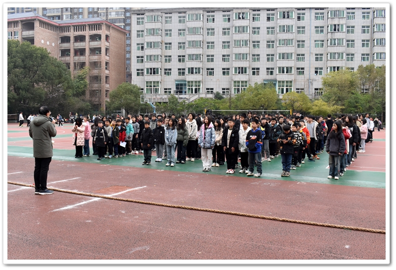 本次拔河比赛以班级为单位,六年级4个班各选出30名男选手、12名女名选手参赛。4支代表队以班级循环形式角逐,胜出的两队晋级、直至决赛,比赛成绩按高低排列。