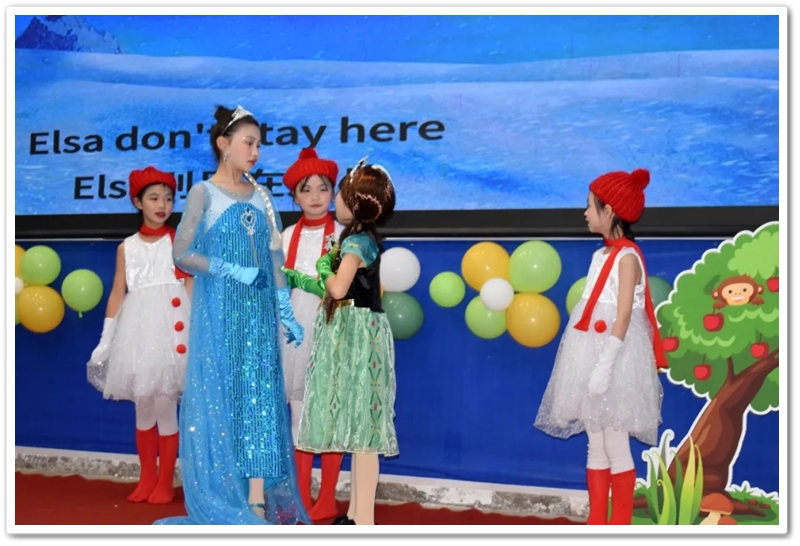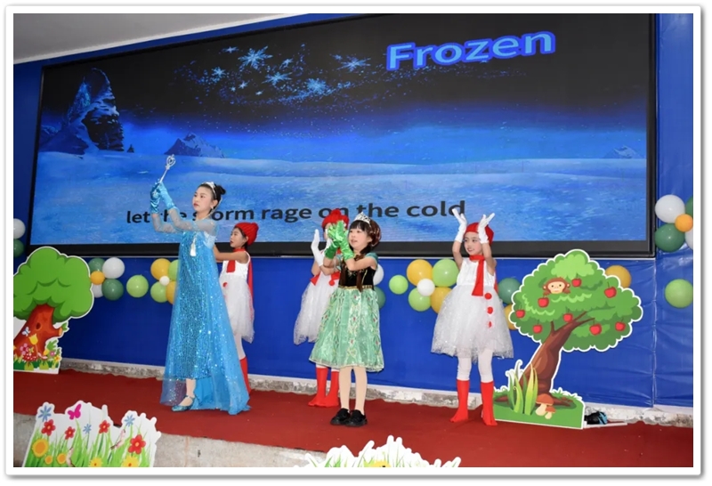 一张张可爱美丽的笑脸传递着纯真的快乐,一句句温暖的话语表达了Anna, Elsa与雪宝宝之间的情谊。396班的孩子们在唯美的歌声中生动演绎了姐妹分别和相聚的情景,充分展示了语言和歌曲的魅力。孩子们优美的舞姿,清脆的声音让观众们难以忘怀,同时也感受到了的美的意境和真情的可贵。