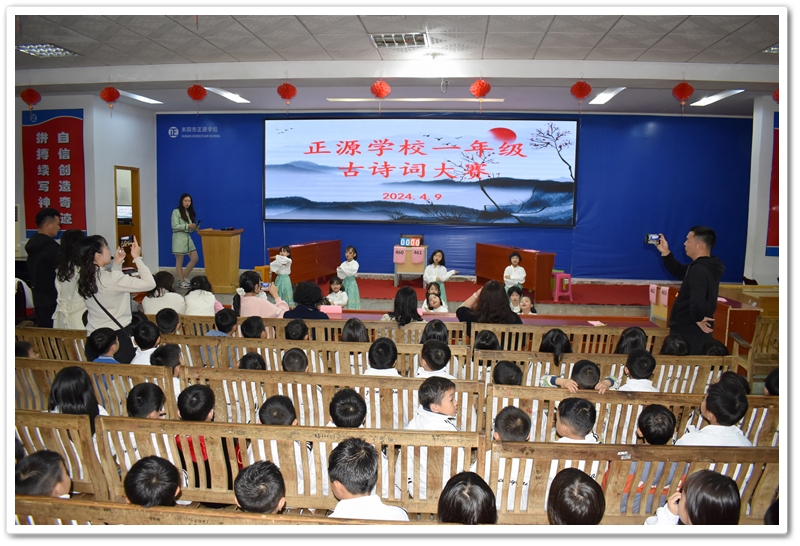 4月9日晚6:40,正源小学一年级在报告厅组织了一场趣味十足的“春天诗词大赛”。孩子们身穿漂亮的春装,带着无限的活力和期待,像春天的蝴蝶一样飞舞在诗词的花丛中。在这场诗词大会上,孩子们的表现简直太棒啦!他们用稚嫩而又充满激情的声音,吟诵着一首首美丽的诗词。本次大赛旨在激发孩子们对诗词的热爱,培养他们的文学素养,同时为校园增添一抹春意盎然的文化色彩。