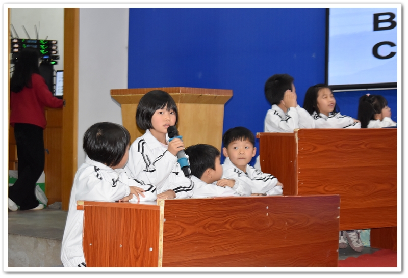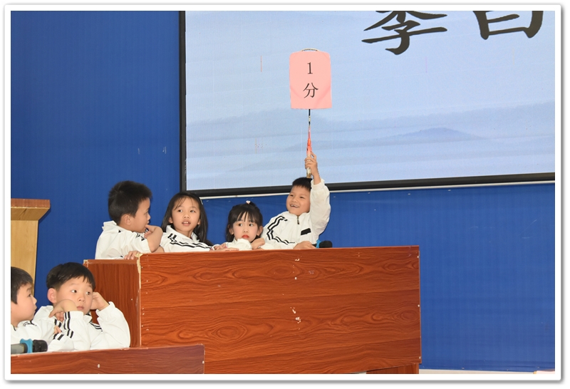 本轮共16题,各班依次派选手答题。孩子们自信满满地坐在位置上,眼神专注地盯着题目,嘴唇轻启,流利地回答出老师的每个问题,声音清脆而坚定。