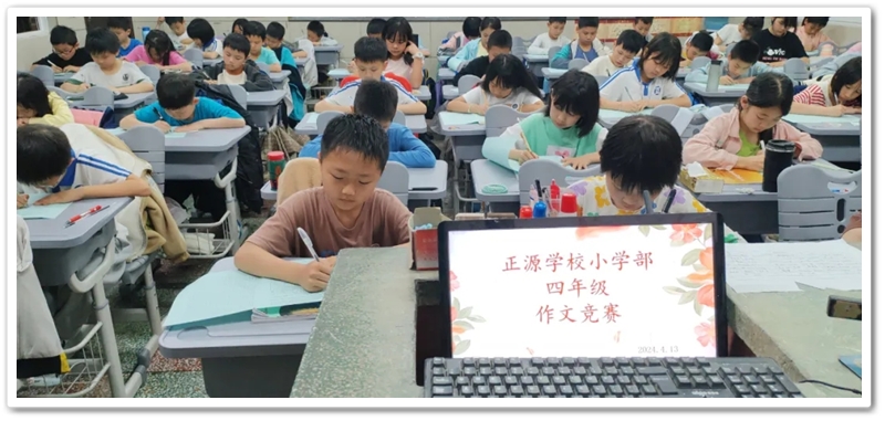 为提升学生语文素养,激发学生写作兴趣,丰富学生校园文化生活,培养学生写作能力,正源三、四、五、六年级语文组于4月13日晚自习举行了年级作文竞赛。