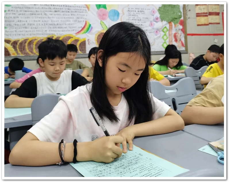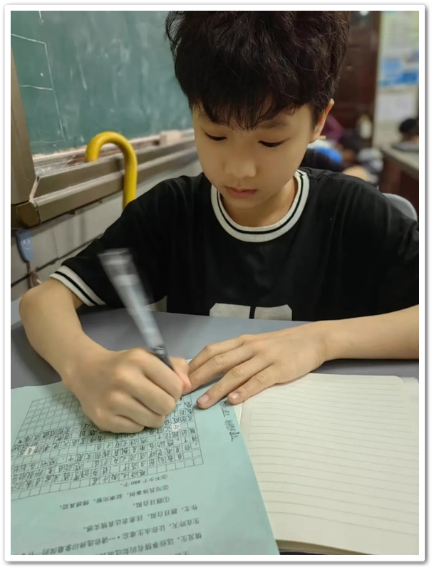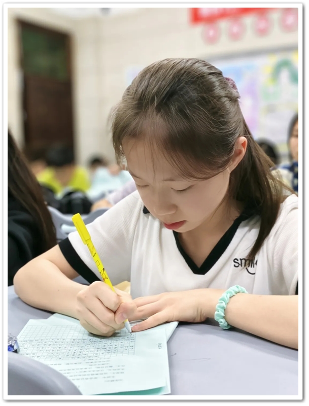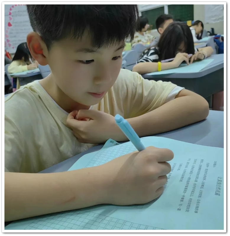 书中自有黄金屋,笔下绽放诗意光。墨迹斑斓,纸张畅情,60分钟流光溢彩。审题用心,言之成章,笔耕不辍。在习作过程中,学生汇聚思绪万千,书写浓情。洁白纸张如雪,墨香飘溢,尽是真情流露。