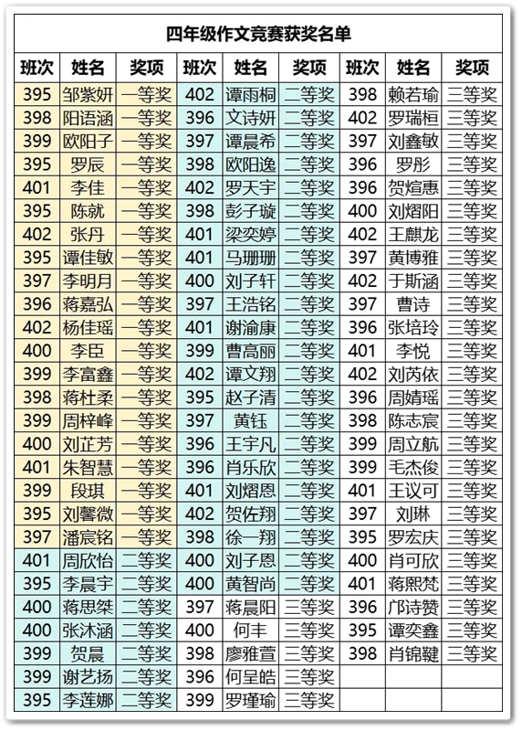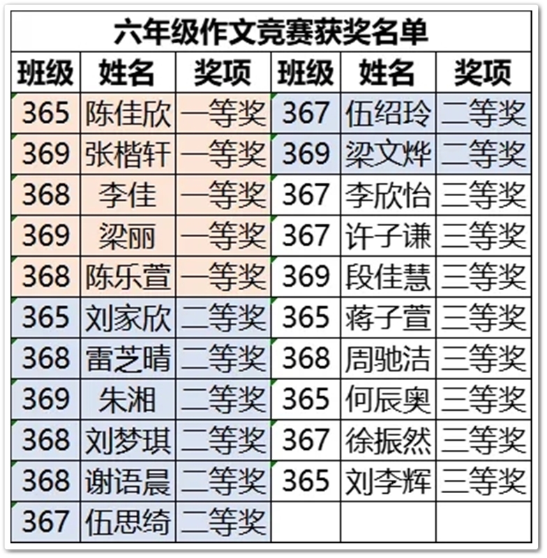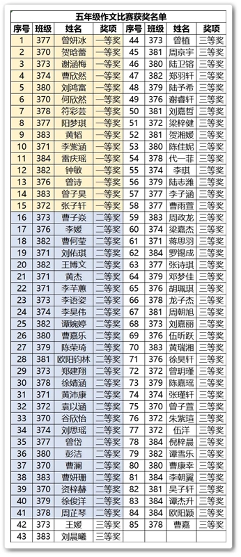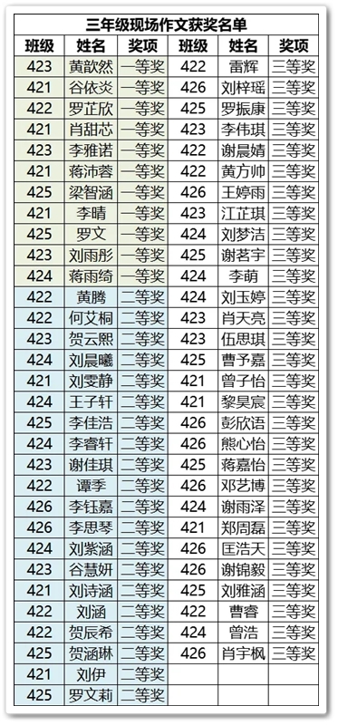 经过各年级语文组精心评选,各年级获奖结果如下: