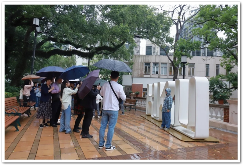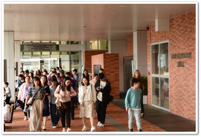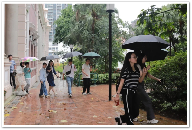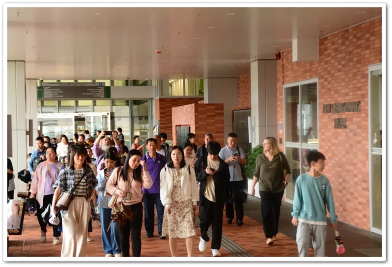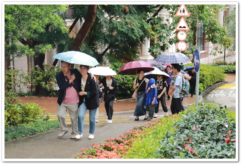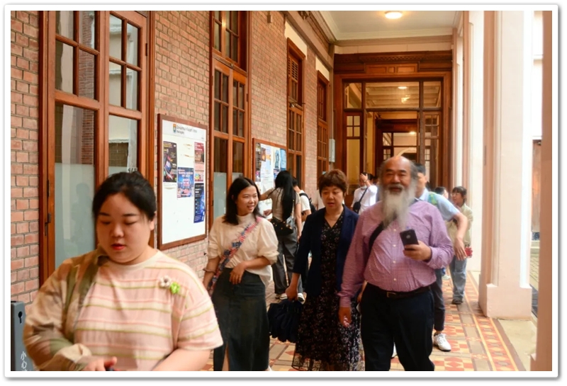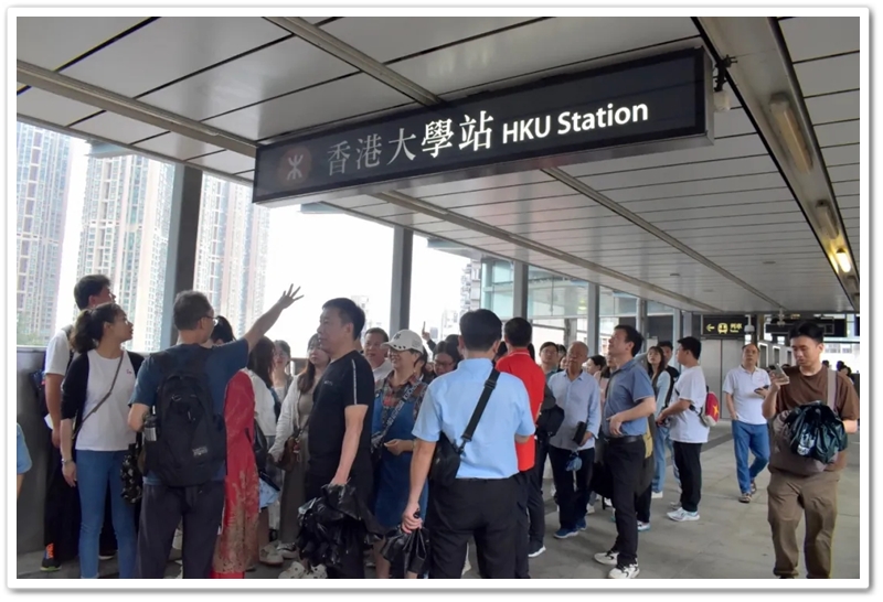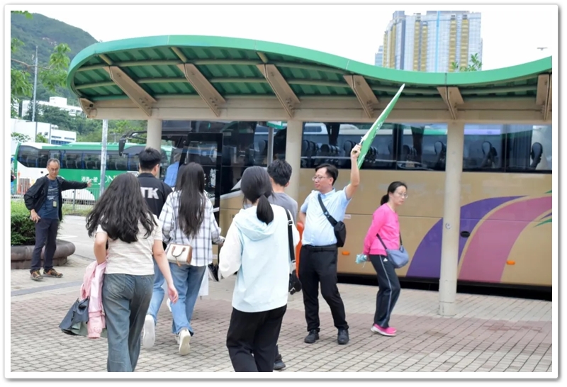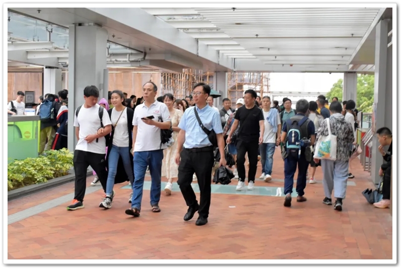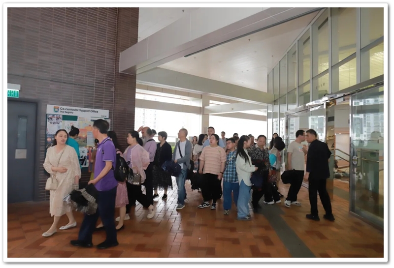 五一上午,老师们分乘6辆大巴浩浩荡荡来到香港大学。香港导游领路,正源“车长”带队,南巡粤港澳团队317名成员分成6支队伍陆续入校,分头参观。
