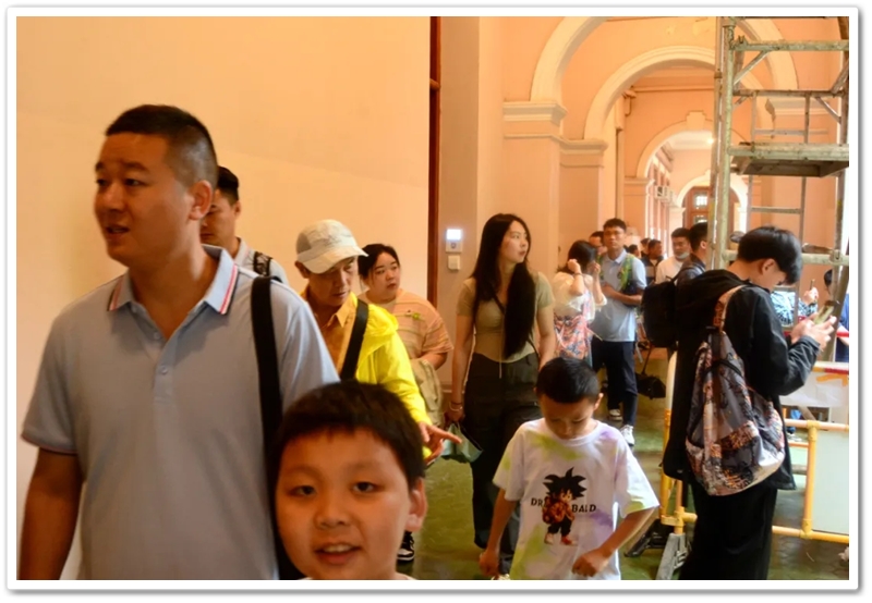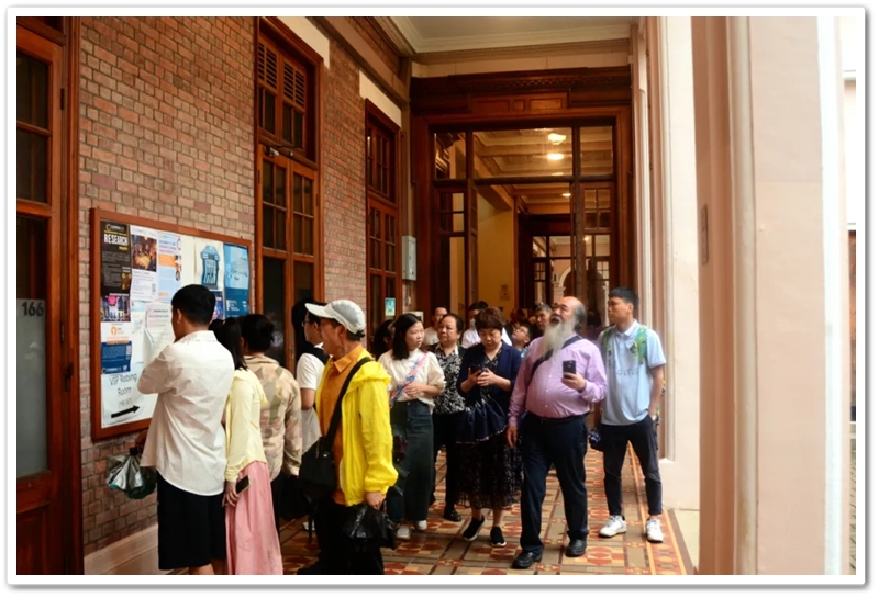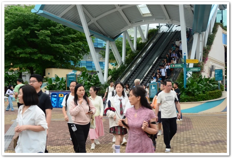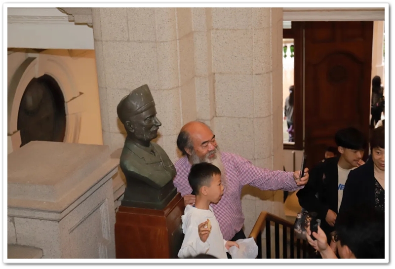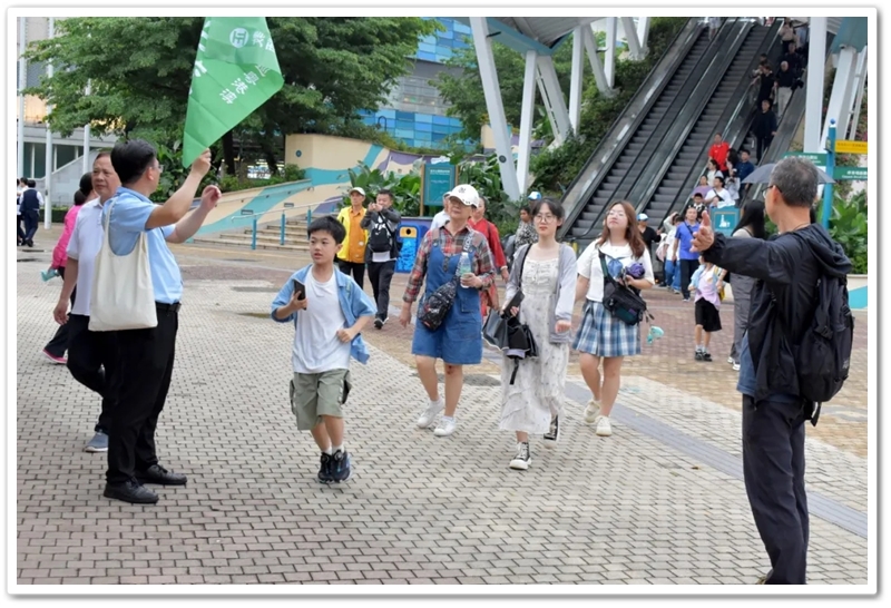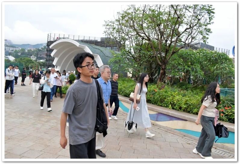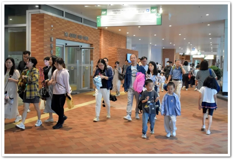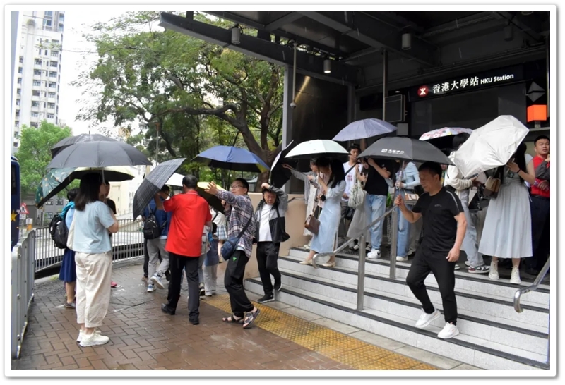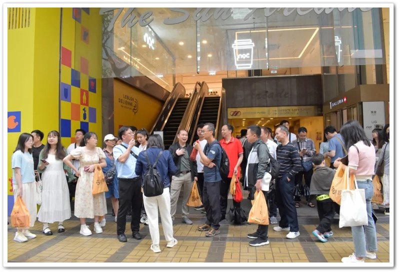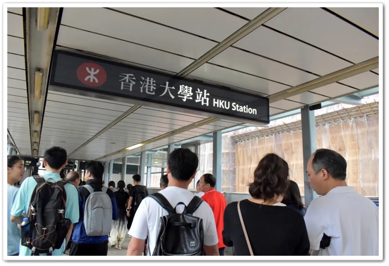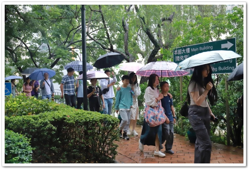 五一上午,老师们分乘6辆大巴浩浩荡荡来到香港大学。香港导游领路,正源“车长”带队,南巡粤港澳团队317名成员分成6支队伍陆续入校,分头参观。