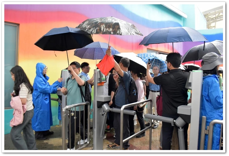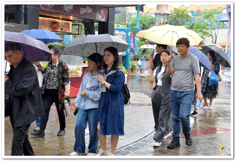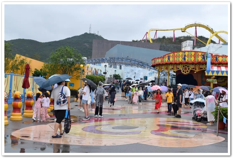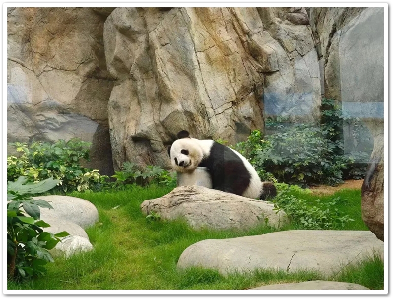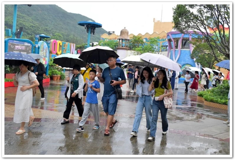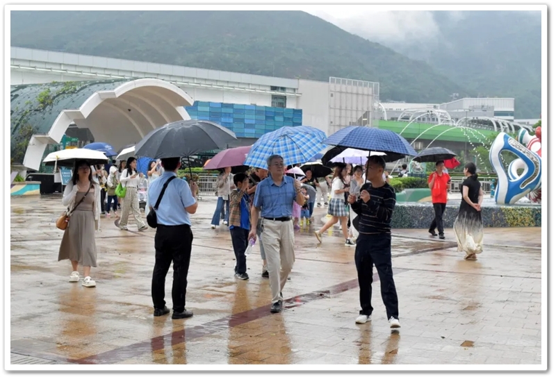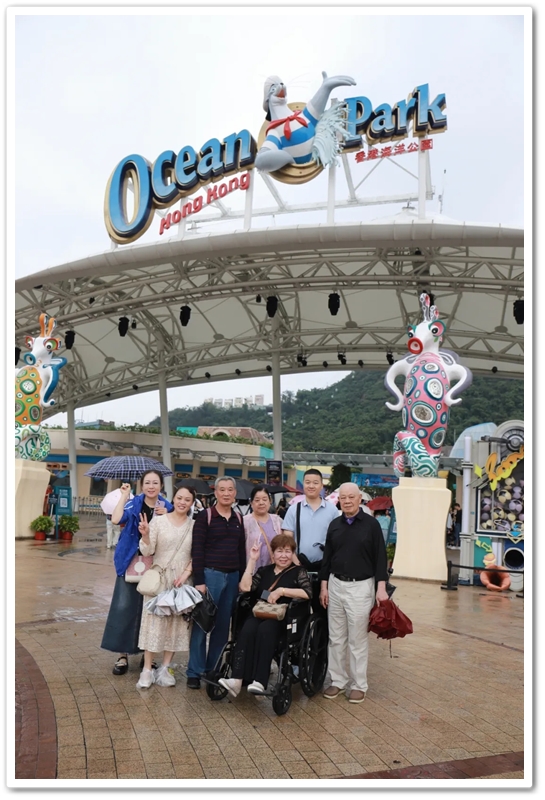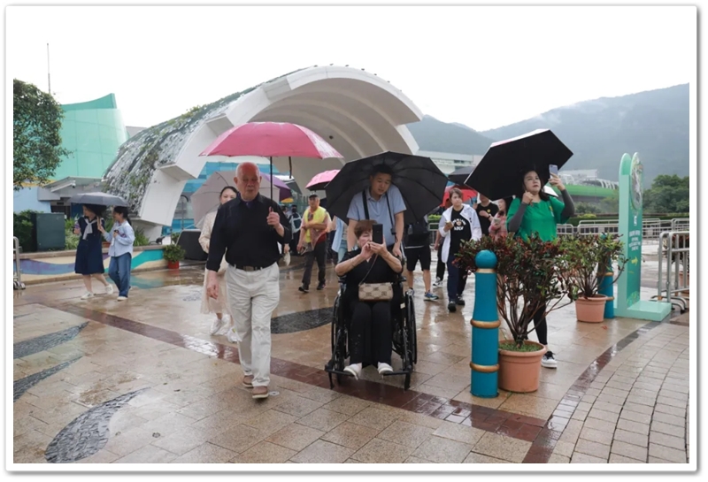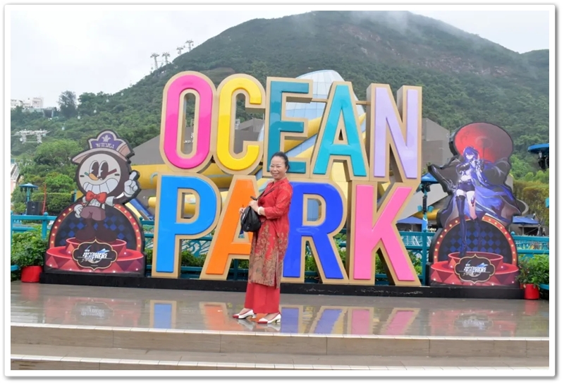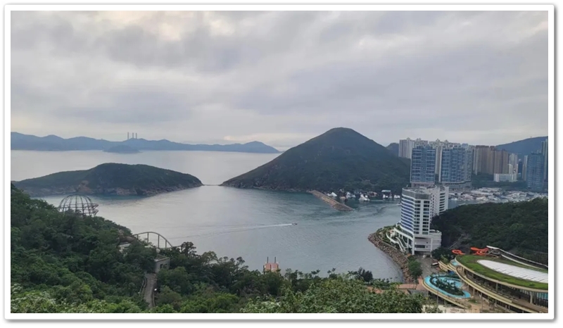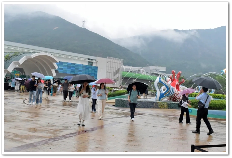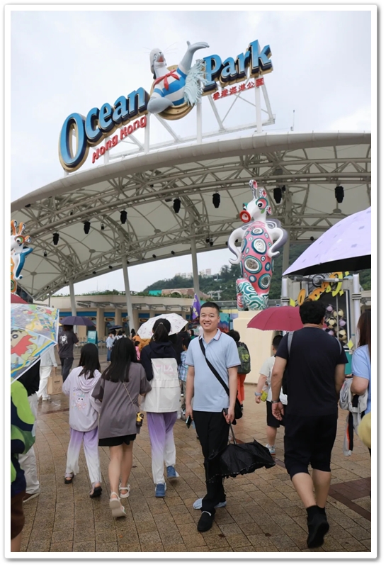 盘亘至中午两点,大家再次冒雨登车,绕着维多利亚港驰行半圈,来到浅水湾对面的海洋公园。