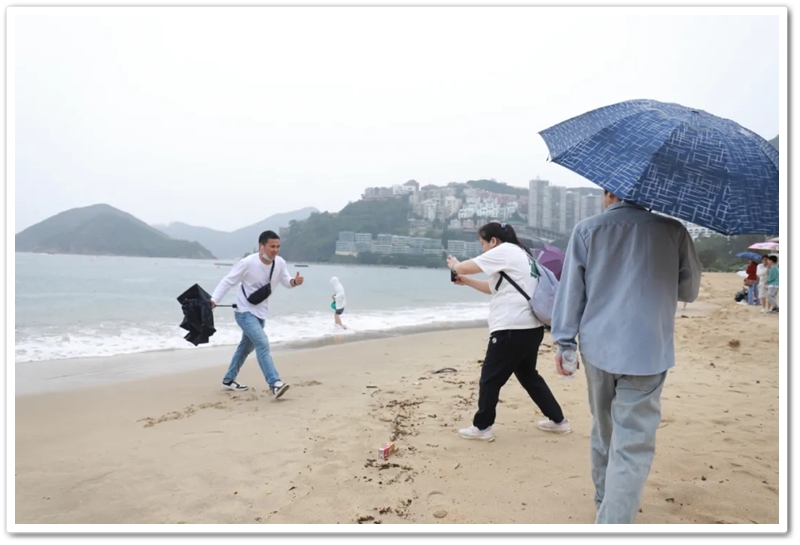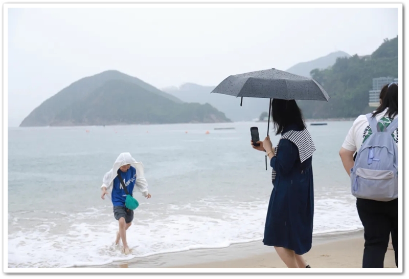 参观完香港大学,车队冒雨来到浅水湾。