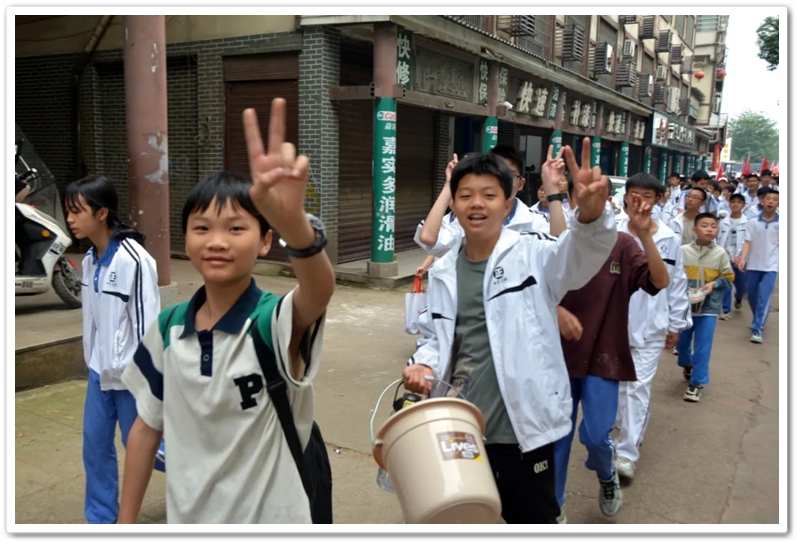 结合曹思学姐利用校园环境“看近看远”保护视力,成功考取清华双学籍空军飞行员,成为耒阳有史以来第一位女空军飞行员的例子;结合正源学哥学姐第一届远足远超预期,成功实现徒步往返的例子,罗校长告诉同学们:“你一天走五十里路可以实现,你考大学也是一样的。不管是要考一本,还是要考211、985,你先把志向给立起来。”