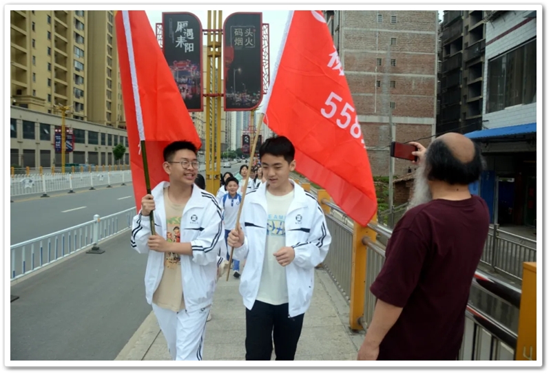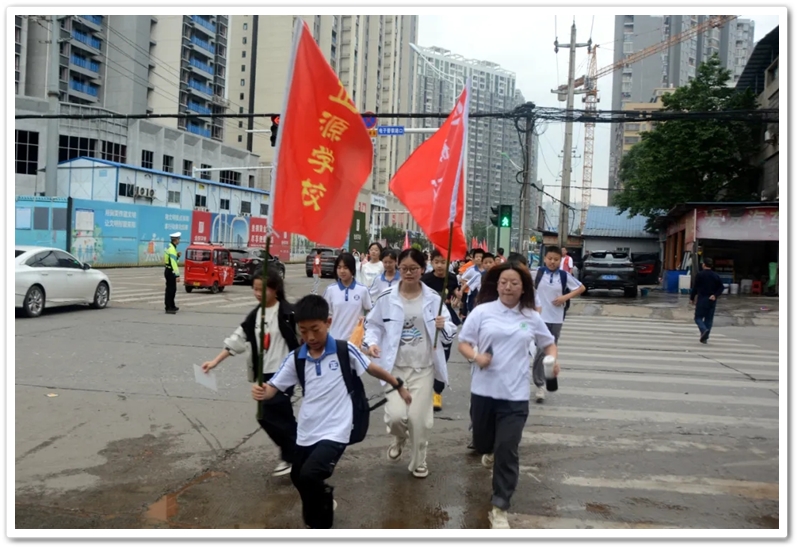 习惯了“一日两千,一生康健”跑操锻炼的正源孩子们,经迎宾大道贯穿德泰隆大道,再贯穿整条群英北路、群英中路、群英南路,1个半小时的徒步跋涉对于他们来说是小菜一碟。此时根本用不上加油打气。