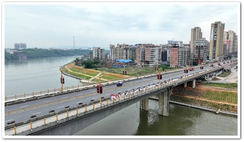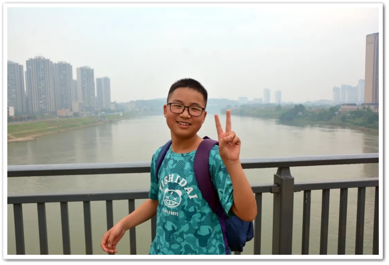 右转切进西湖路,转角不远踏上鹿岐峰大桥,罗校长再次伫立桥中央,举起手机打开摄像头,与每一个班级、每一个孩子招手致意。