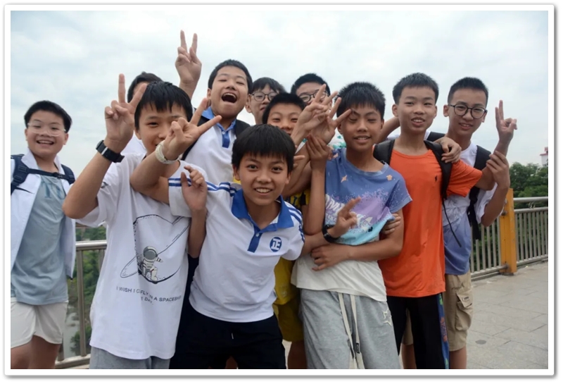 7点30分,初一年级主任尹伯林围绕安全、卫生、努力、形象、团结五个关键词,对学生们展开动员讲话。星夜兼程从广州赶回来的罗校长,也神采奕奕现身广场。见到校长要陪自己远足,孩子们欢声如雷——太幸运了!