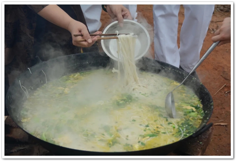 水车、柴车、锅具厨具、野炊食材,食堂工人均已准备妥当。白色长龙就地一顿,水银泄地一般填满营地,化为密密麻麻的白色蚂蚁军团。打水的打水,搬砖的搬砖,搭灶的搭灶,洗菜的洗菜……日常人烟罕至的一片山窝野地里,霎时热火朝天,炊烟袅袅。