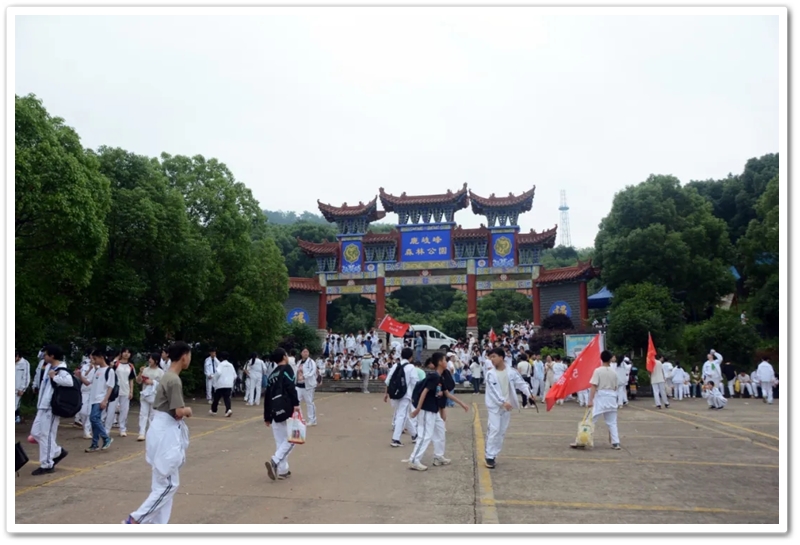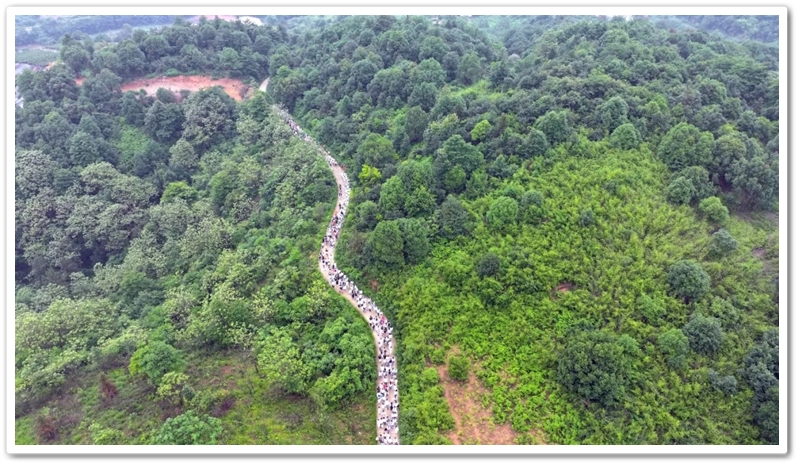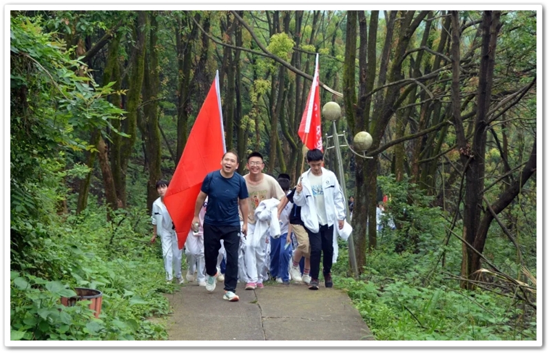 中午1点,鲜红的旗帜再次高高飞舞,洁白的长龙路队开始拾级而上,沿着一路坡道、一路鸟语花香,欢呼雀跃着攀登鹿岐峰。