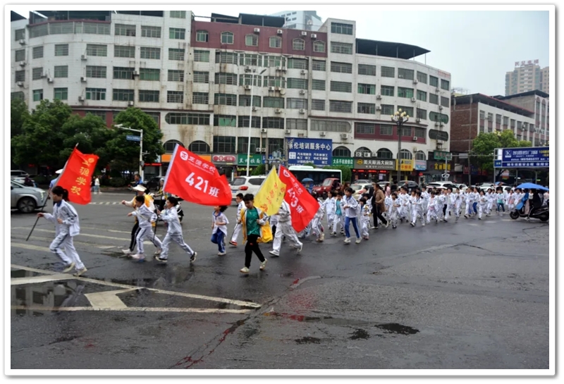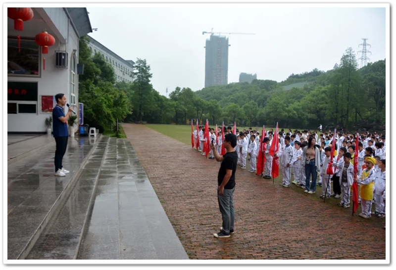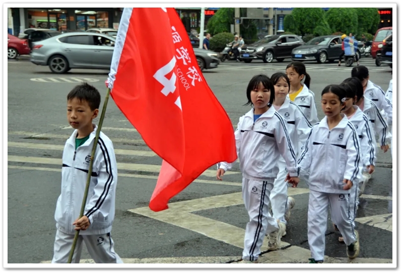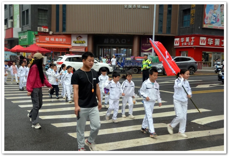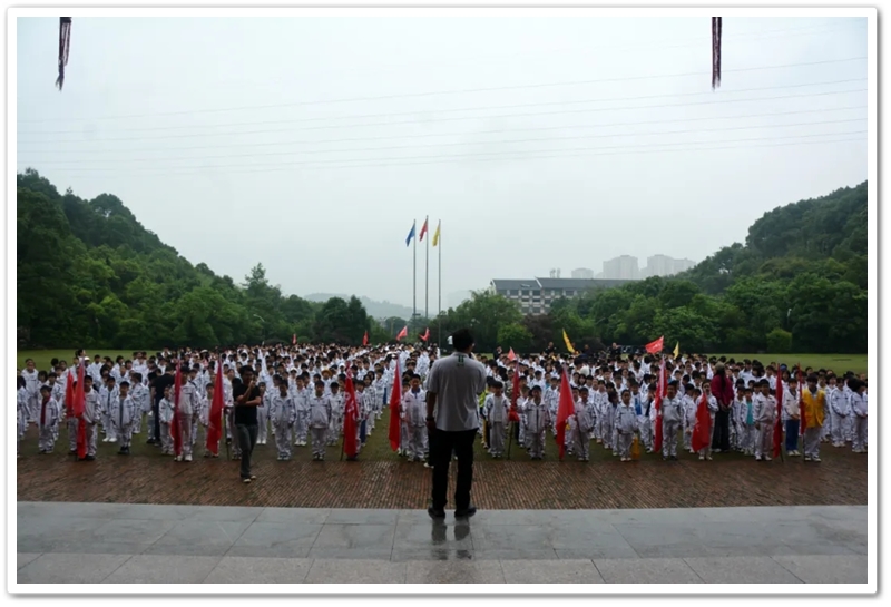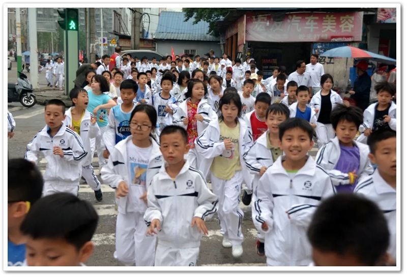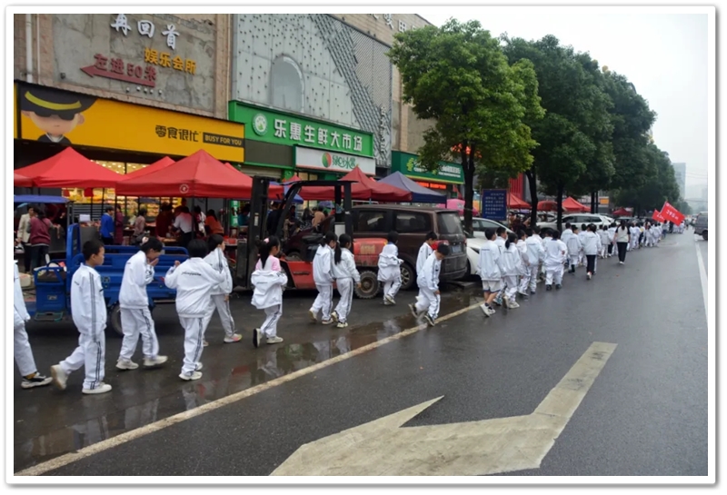 7点35分,三、四年级全体师生齐聚学校广场,聆听年级主任和学部主任的细细叮嘱。