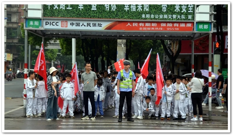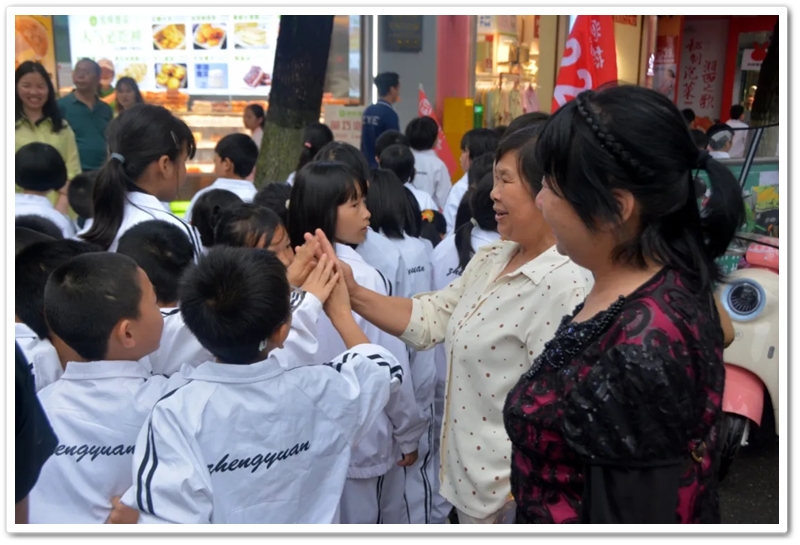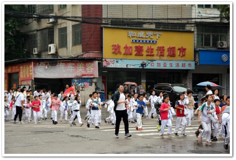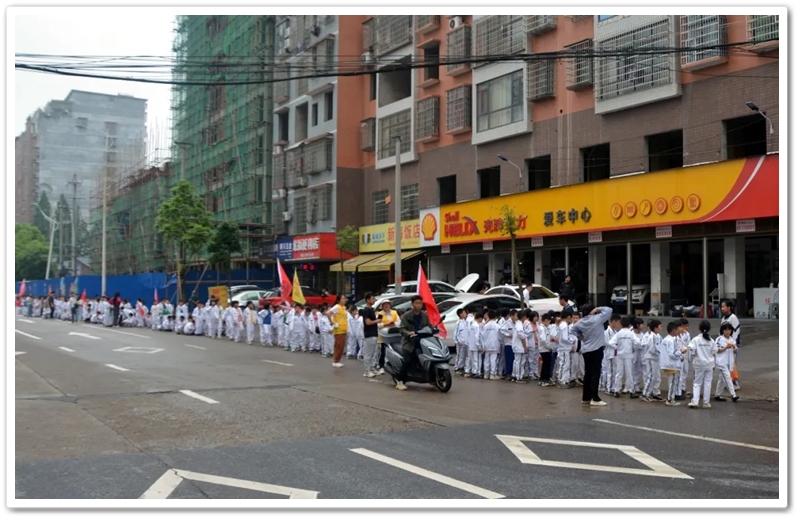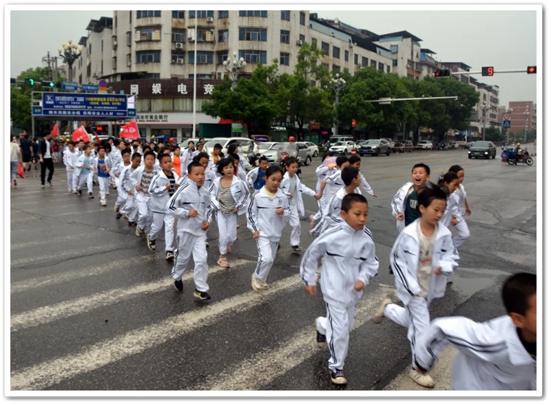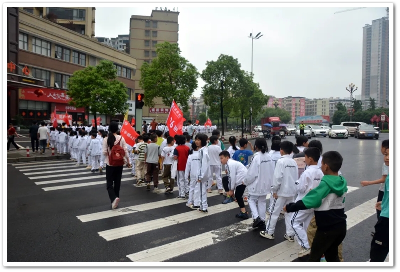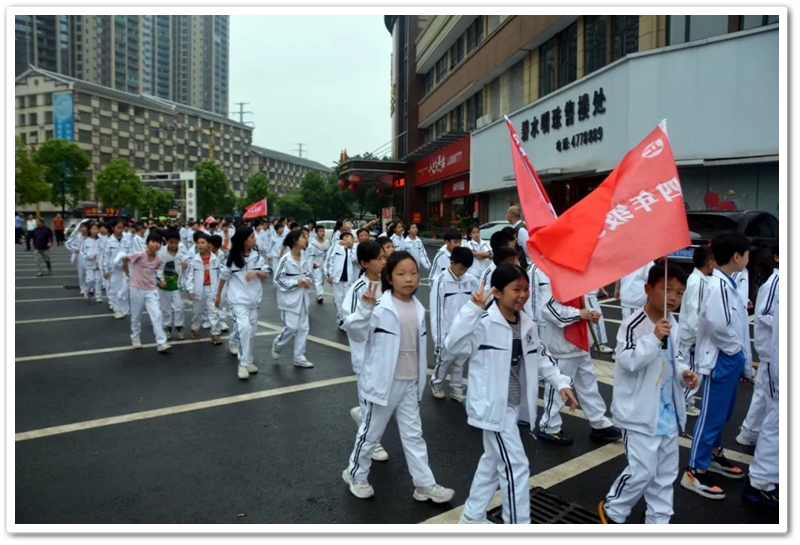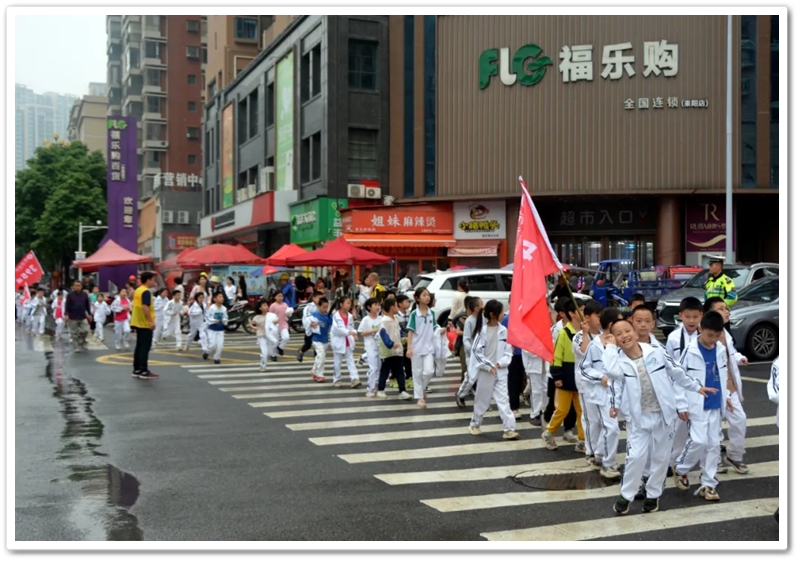 7点35分,三、四年级全体师生齐聚学校广场,聆听年级主任和学部主任的细细叮嘱。