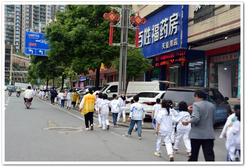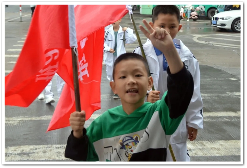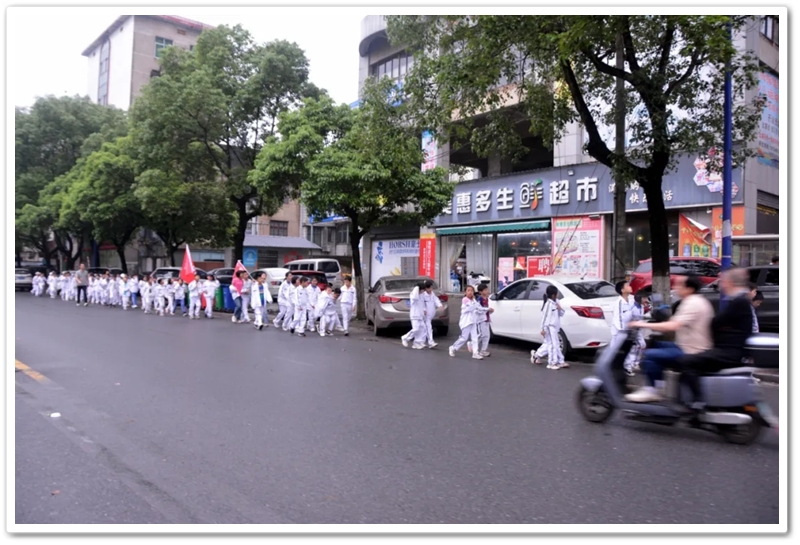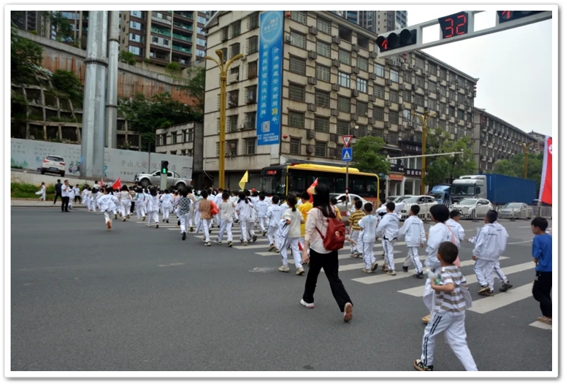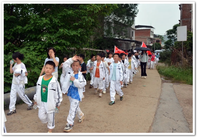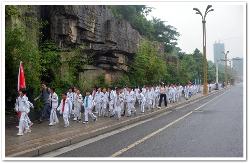 8点整,准时开拔,伴随着孩子们的欢呼,远足活动正式开始。