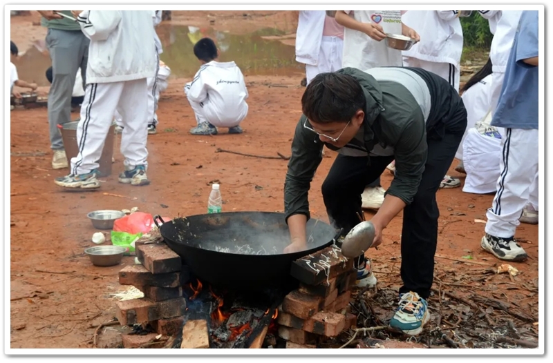 10点45分,在各班班主任的指挥下,各班有序开展野炊活动。搭灶烧火队、打水队、洗菜队、饺子队、烹饪队依次开拔,前往特定位置进行“战斗”。