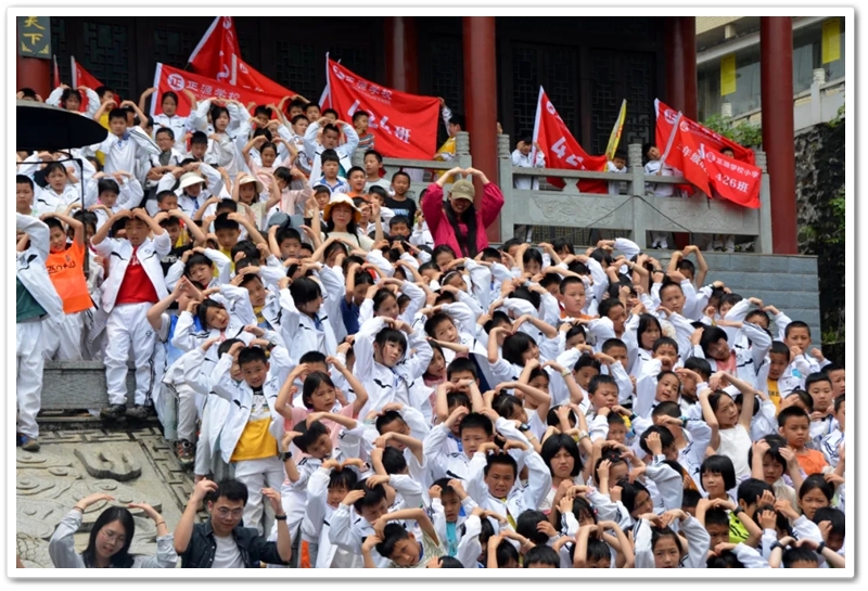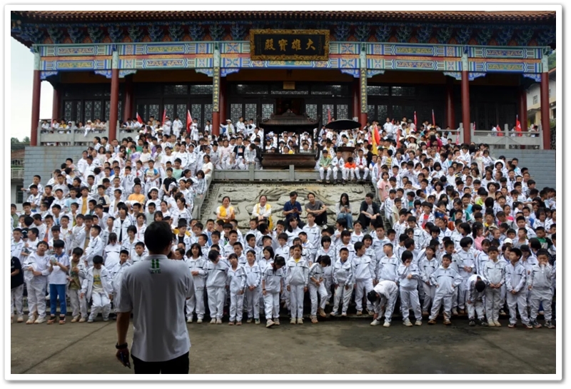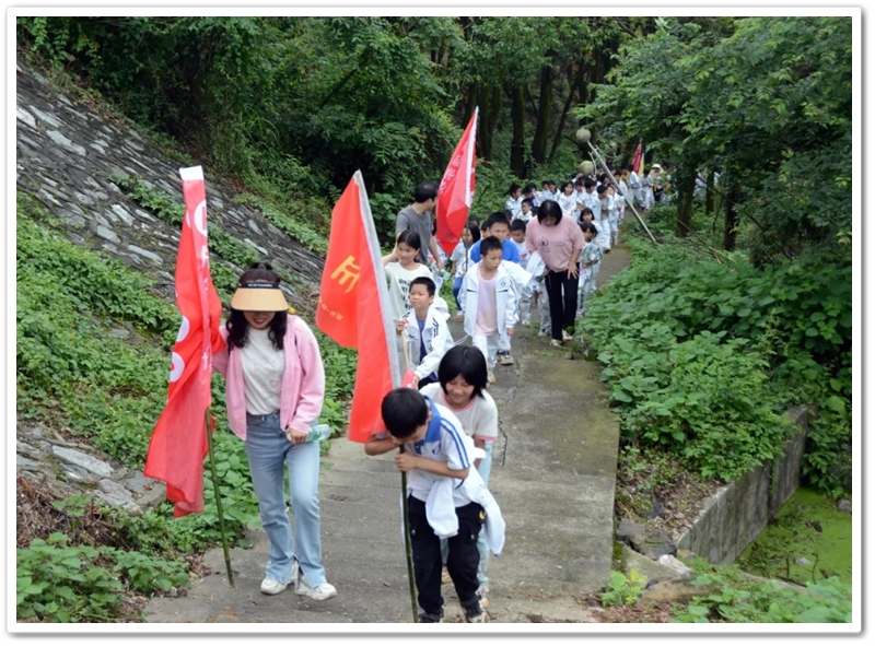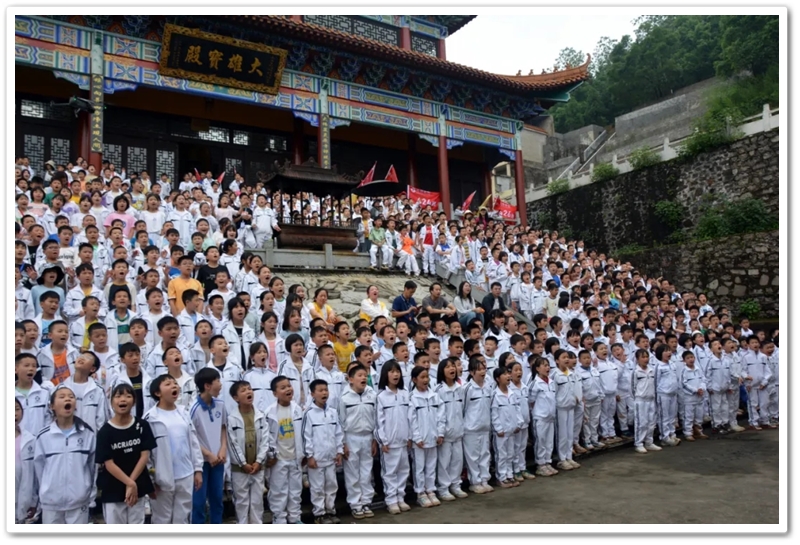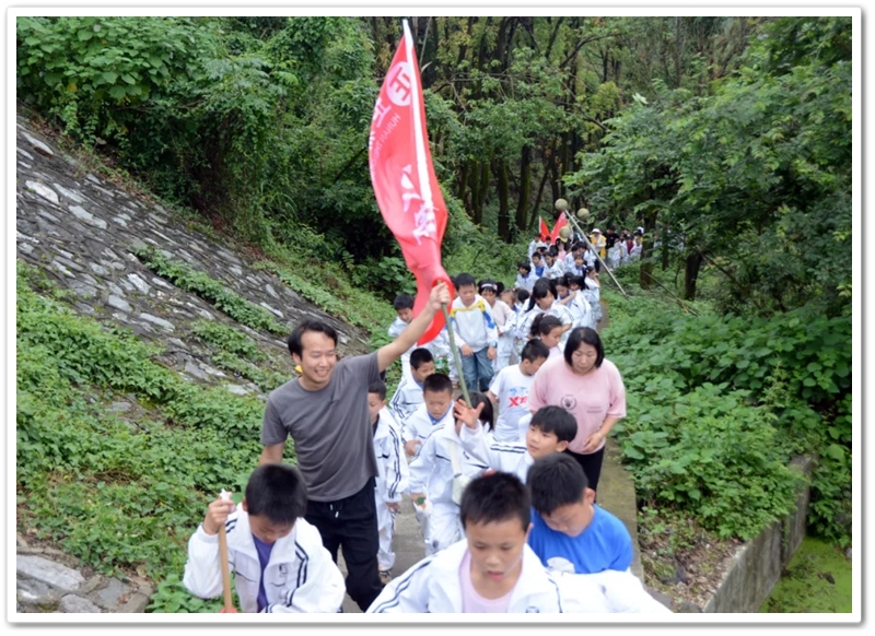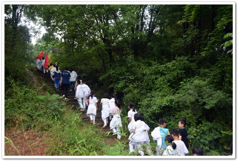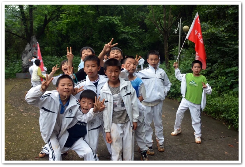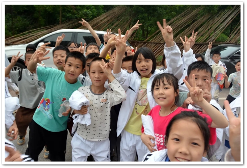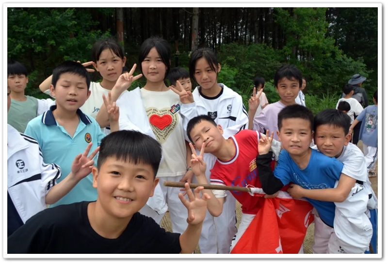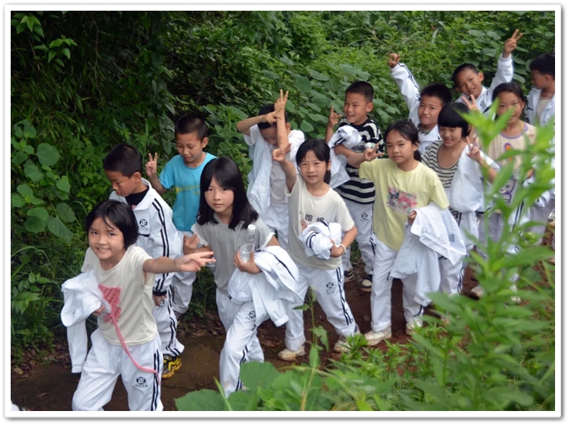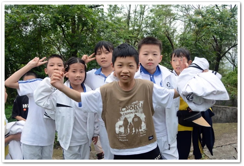 13点整,孩子们顺利登上鹿岐峰,大家齐聚鹿岐峰大庙,一起将快乐时光留下。