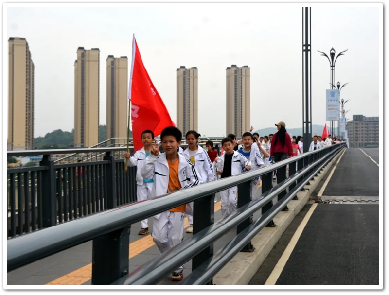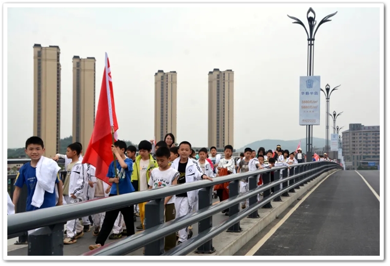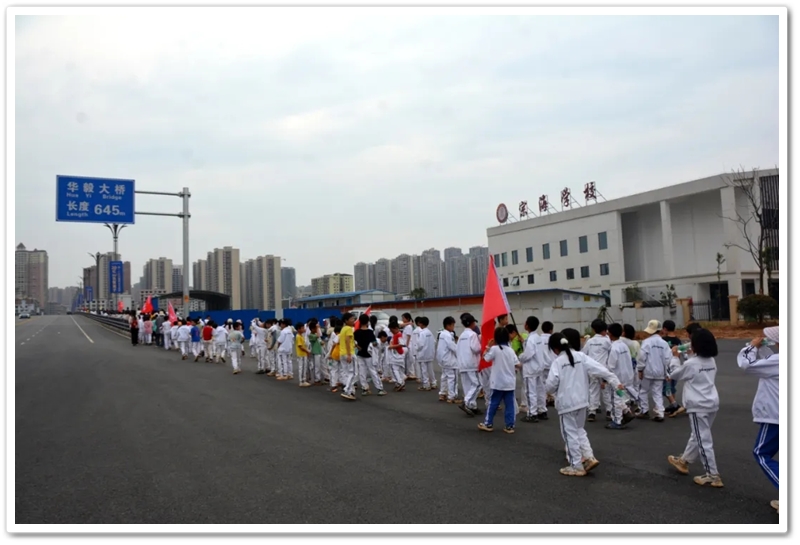 从学校南门出发,沿着德泰隆路前行,穿过鹿岐峰大桥,途经码头烟火,10点40分,徒步二十多里的孩子们,顺利抵达野炊地点——鹿岐峰山脚。一路上孩子们活力满满,欢声笑语不断。