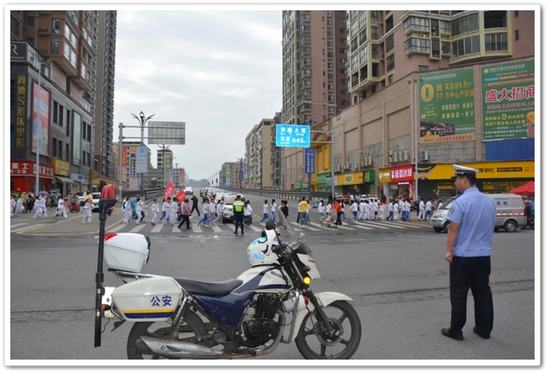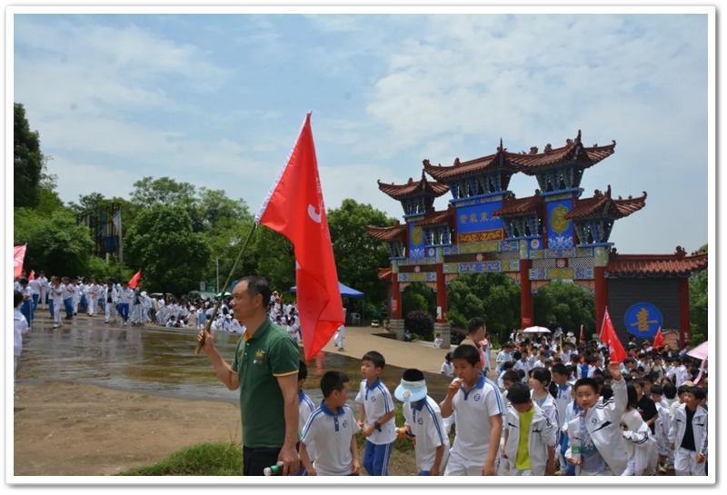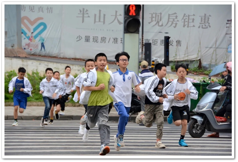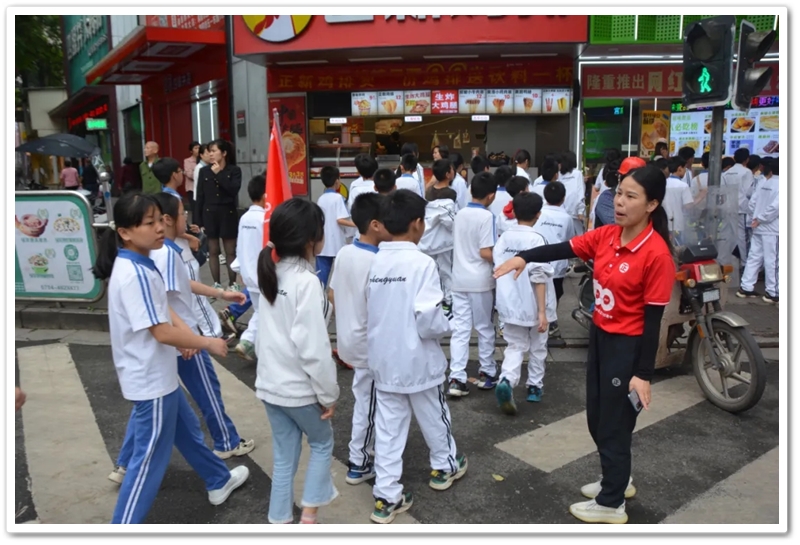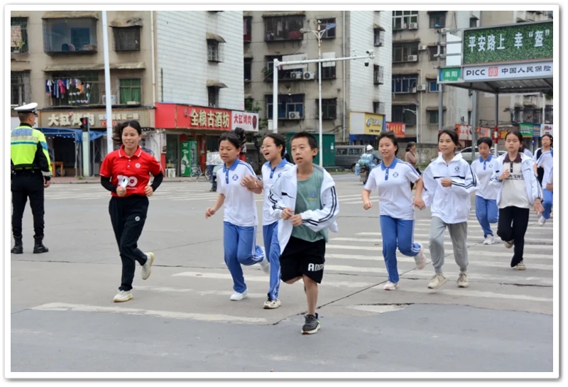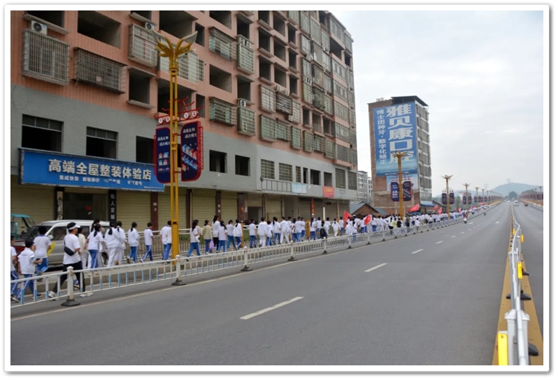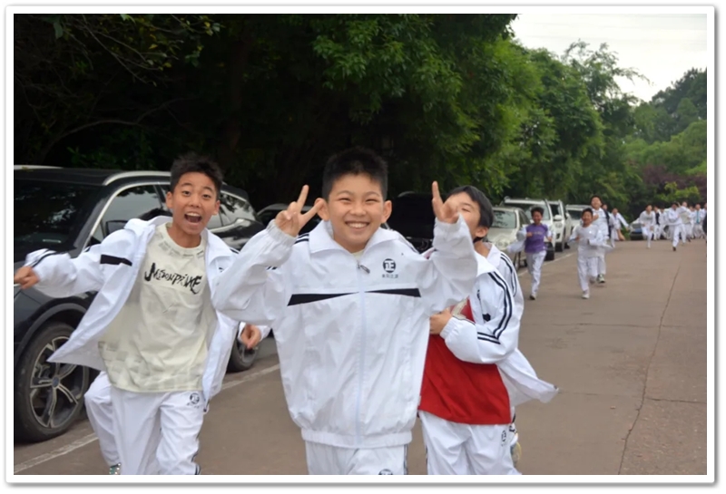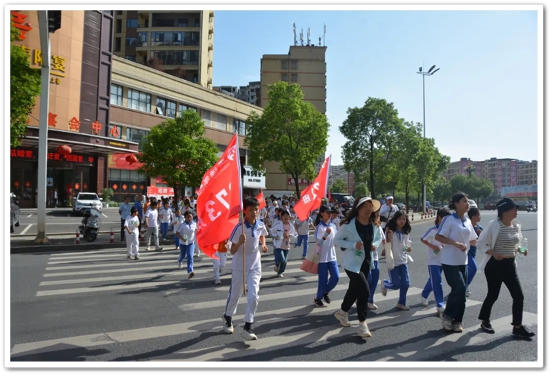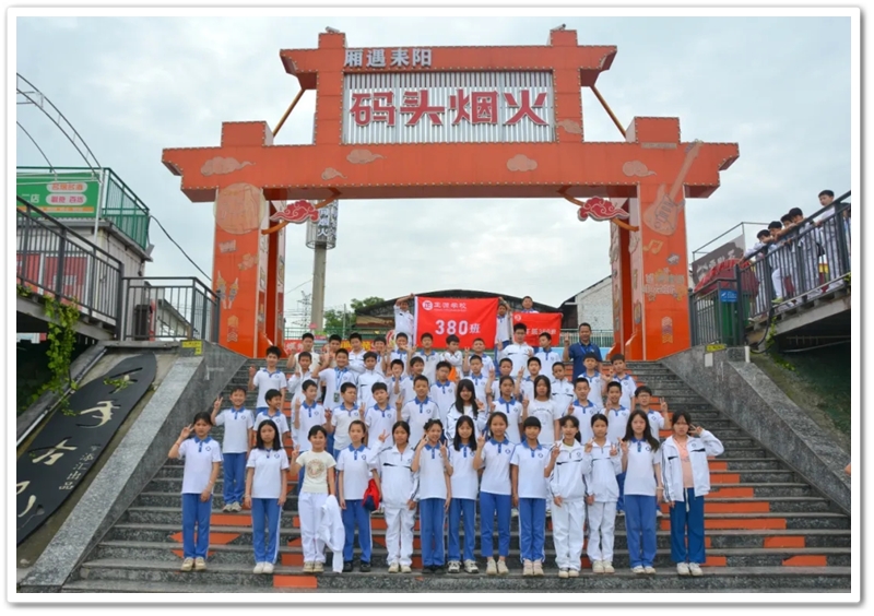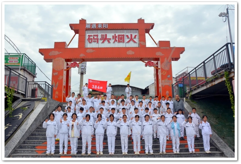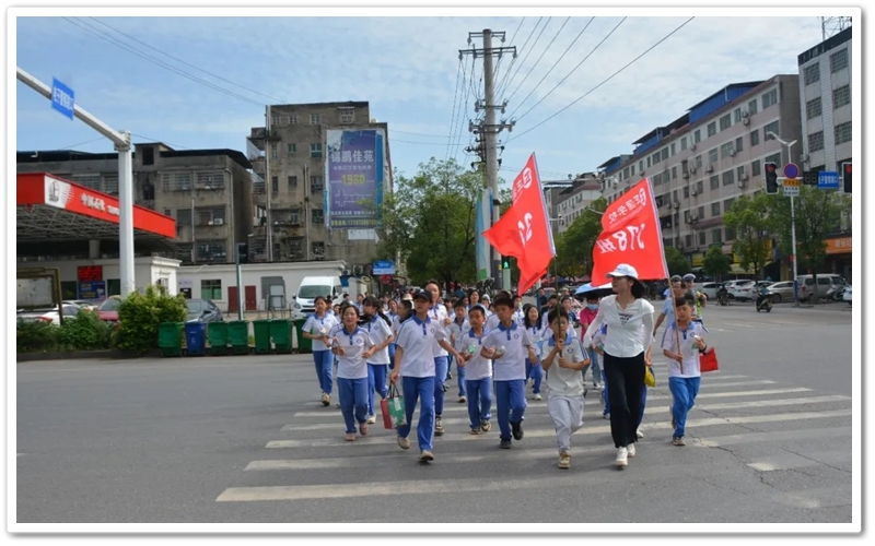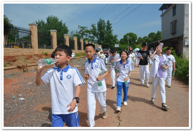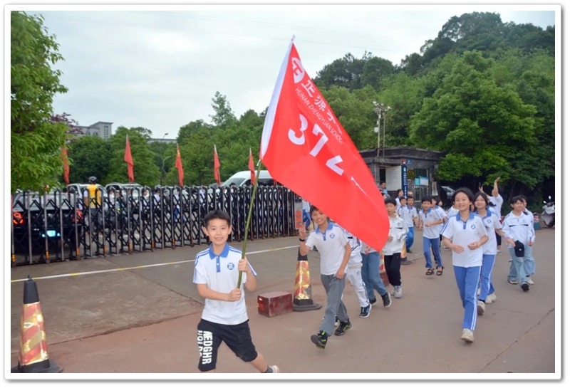 出校门,下迎宾大道,红绿灯左转,直入德泰隆路,半个小时,队伍已到达耒阳大桥下,在耒阳交警的护卫下,在校安保队的组织下,同学们鱼贯穿过长长的城北路口,汇入群英北路,继续直行,过五一路口,经蔡伦纪念园,一个转弯,鹿岐峰大桥就赫然出现在眼前。一路上,同学们有说有笑,你追我赶,争先恐后,意气昂扬!为了不掉队,同学们一切行动听指挥,纪律严明;为了不掉队,有的同学们连走带跑,保证队伍运行速度;我们的同学就好比一个个士兵,我们的队伍就如同一支军队,在老师的带领下,出来“拉练”。对,拉练,拉练,我们是在拉练,我们如一支军队在拉练。我们的学生在拉练,我们的老师也在拉练。没有一个掉队的学生,没有一个掉队的老师!然而在这样的“紧急行军”过程中,你还会看到一幕幕“舒缓”的景象:“爷爷好”、“奶奶好”、“叔叔好”、“阿姨好”、“伯伯好”、“....好”。清晨,菜市繁忙,人潮涌动,最是人间烟火气的时候,在这一声声稚嫩却真挚的主动问候里,谁听了不心头一颤,顿觉甜蜜呢?这一声声清脆悦耳的问候,给耒阳城的早市增添了无限的活力与温馨!校园文明建设,城市文明建设,讲文明话,做文明事,并不是一句空谈,只有切切实实说到了,做到了,才能实现文明建设。