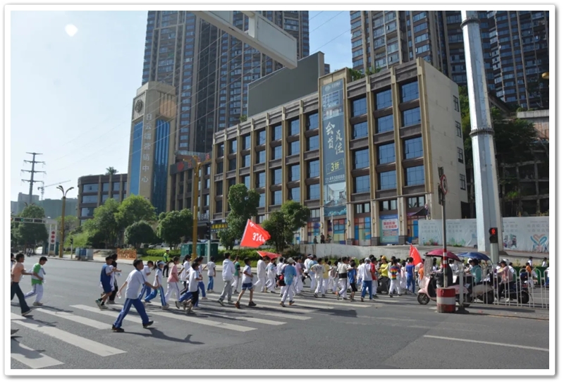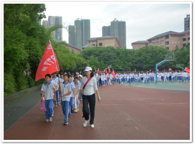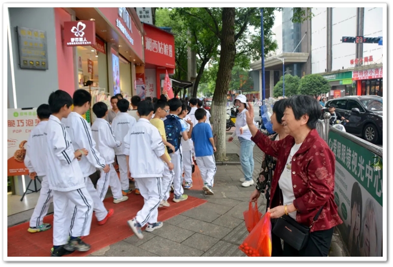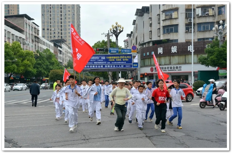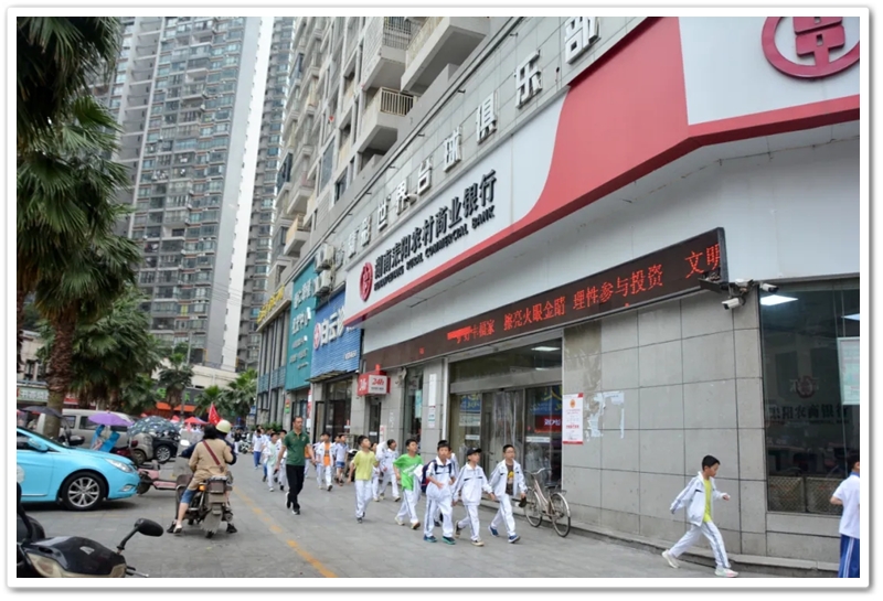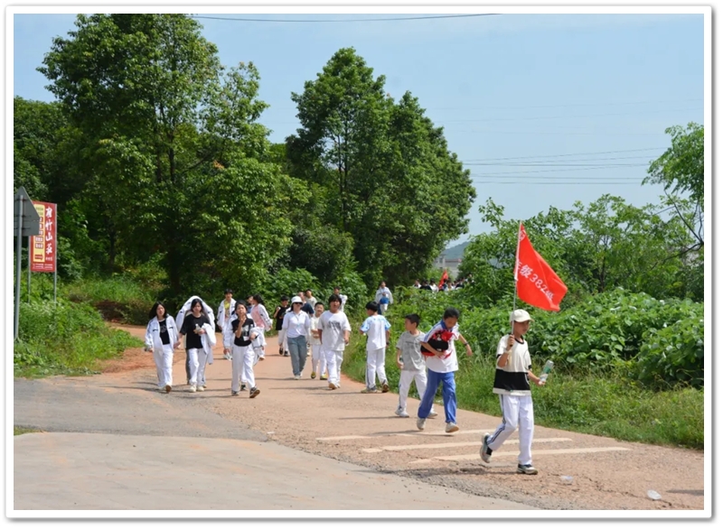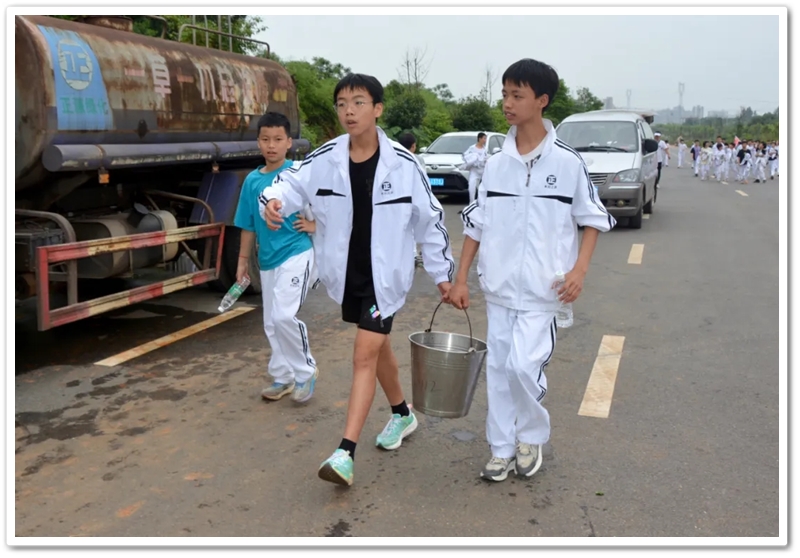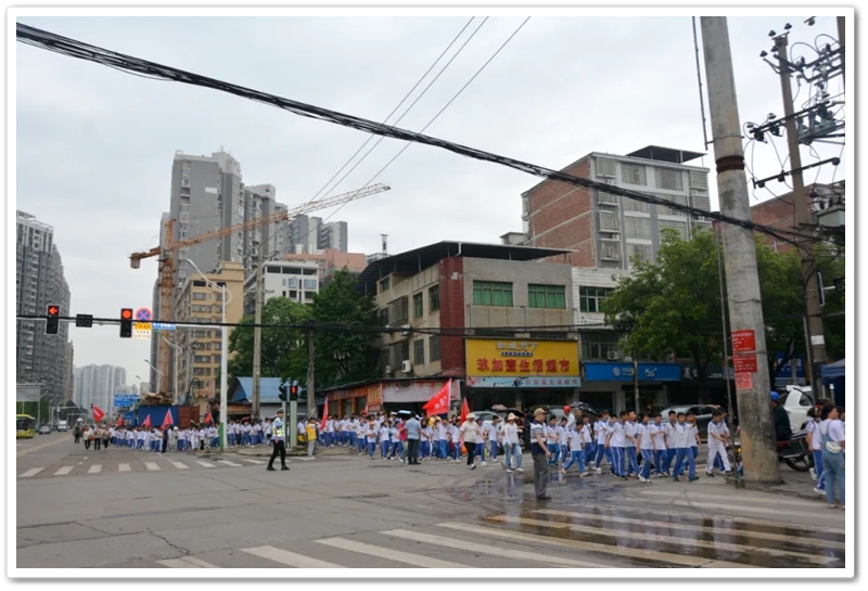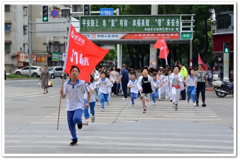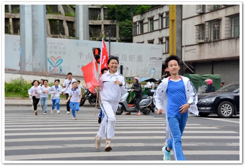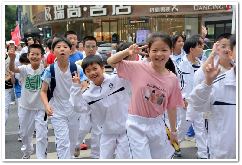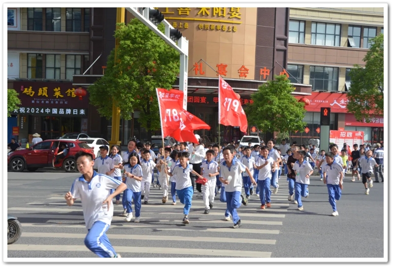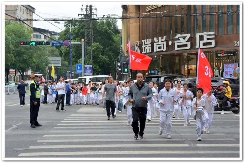 出校门,下迎宾大道,红绿灯左转,直入德泰隆路,半个小时,队伍已到达耒阳大桥下,在耒阳交警的护卫下,在校安保队的组织下,同学们鱼贯穿过长长的城北路口,汇入群英北路,继续直行,过五一路口,经蔡伦纪念园,一个转弯,鹿岐峰大桥就赫然出现在眼前。一路上,同学们有说有笑,你追我赶,争先恐后,意气昂扬!为了不掉队,同学们一切行动听指挥,纪律严明;为了不掉队,有的同学们连走带跑,保证队伍运行速度;我们的同学就好比一个个士兵,我们的队伍就如同一支军队,在老师的带领下,出来“拉练”。对,拉练,拉练,我们是在拉练,我们如一支军队在拉练。我们的学生在拉练,我们的老师也在拉练。没有一个掉队的学生,没有一个掉队的老师!然而在这样的“紧急行军”过程中,你还会看到一幕幕“舒缓”的景象:“爷爷好”、“奶奶好”、“叔叔好”、“阿姨好”、“伯伯好”、“....好”。清晨,菜市繁忙,人潮涌动,最是人间烟火气的时候,在这一声声稚嫩却真挚的主动问候里,谁听了不心头一颤,顿觉甜蜜呢?这一声声清脆悦耳的问候,给耒阳城的早市增添了无限的活力与温馨!校园文明建设,城市文明建设,讲文明话,做文明事,并不是一句空谈,只有切切实实说到了,做到了,才能实现文明建设。