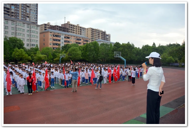 早上7点30,五、六年级18个班集合于操场,同学们一个个精神抖擞,蓄势待发。五年级王主任、六年级曾主任和学部罗主任分别发表了动员讲话。王主任就“纪律、安全、文明、卫生”四个方面提出了具体要求;曾主任号召大家做到团结友爱;罗主任表达了对本次活动的美好期待:祝愿这次远足活动能顺利通过本学期“创建文明校园”的检验考核,希望这次远足活动能成为一次“文明之旅”、“风尚之旅”和“美丽之旅”。
