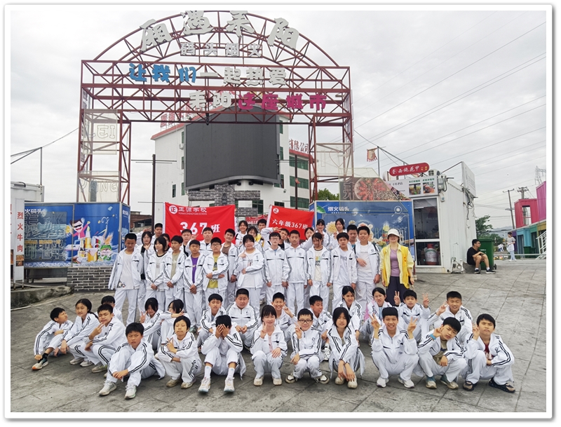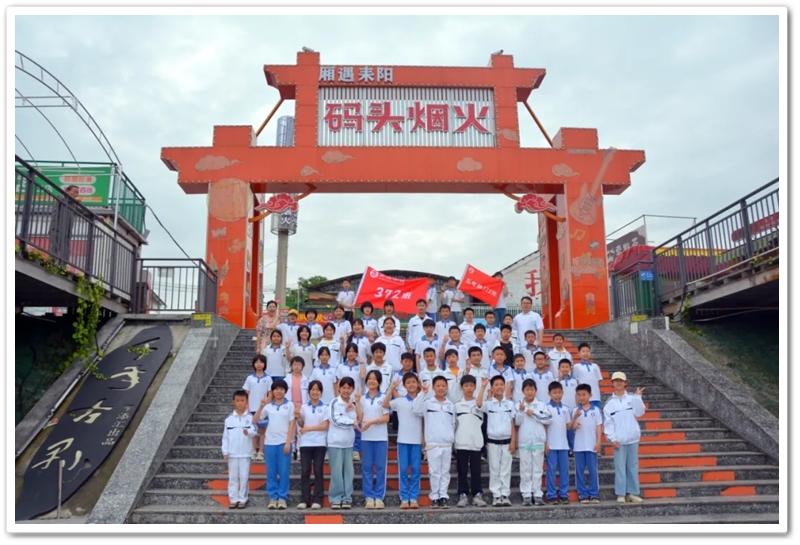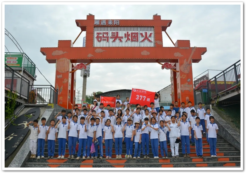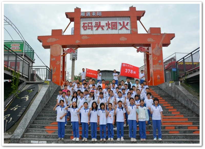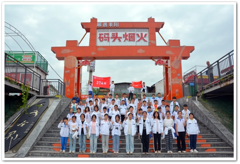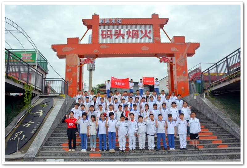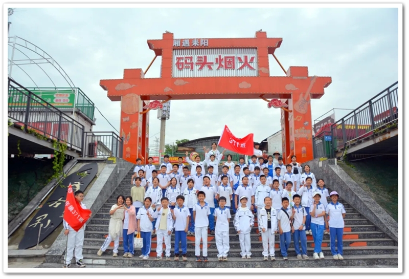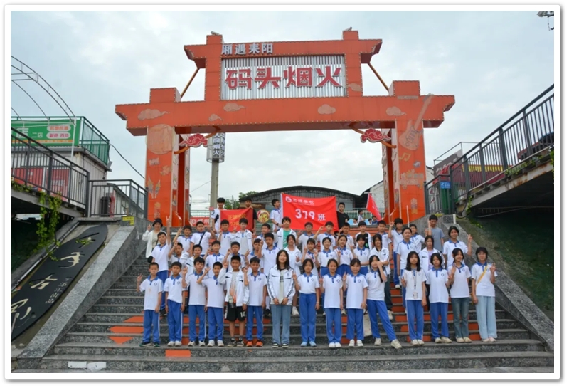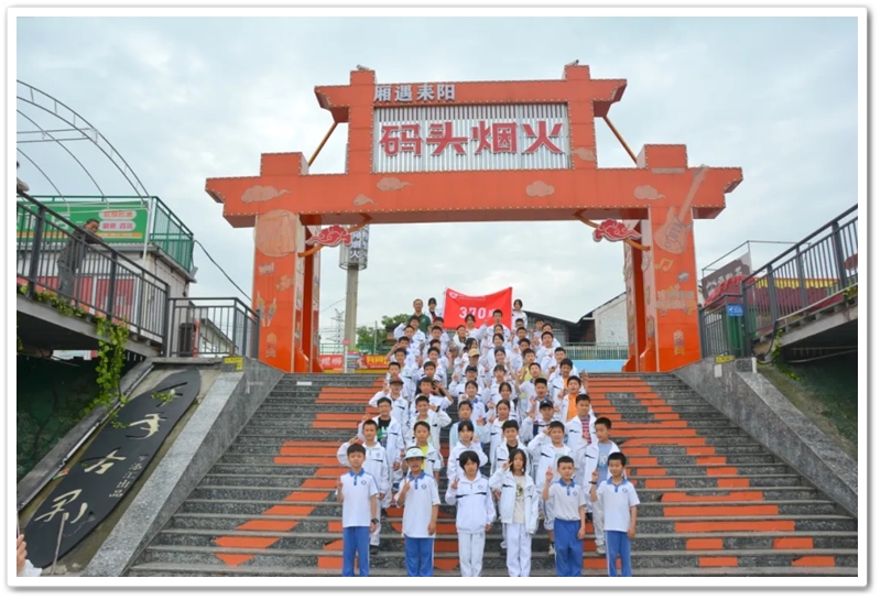 下了大桥,我们来到了耒阳网红打卡之地——厢遇耒阳•码头烟火,这里是耒阳最火爆的夜市美食街。老师们纷纷组织各班学生在标志处拍集体照,打卡留念。