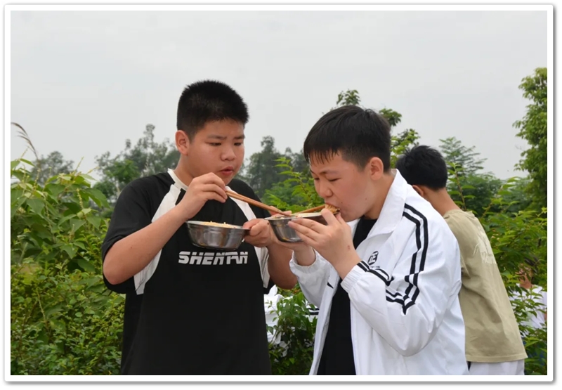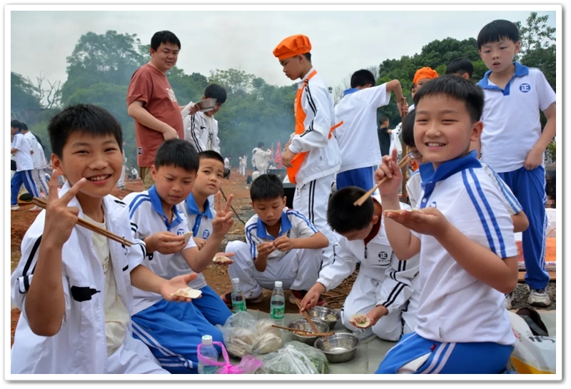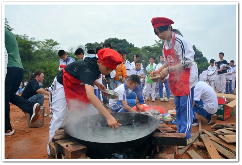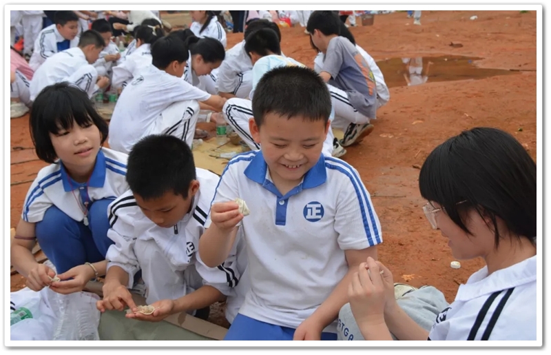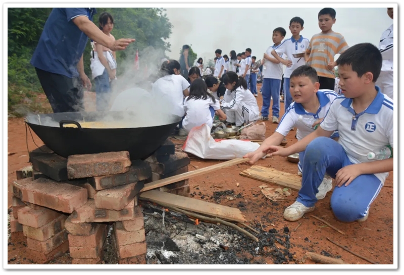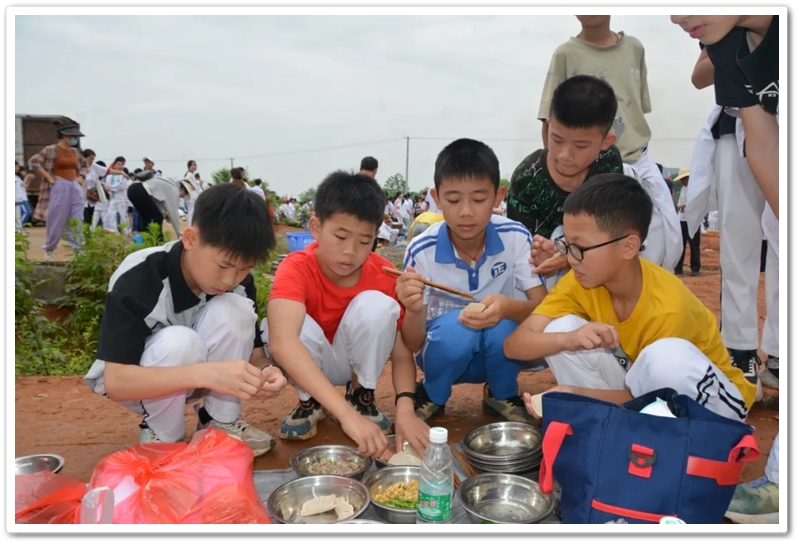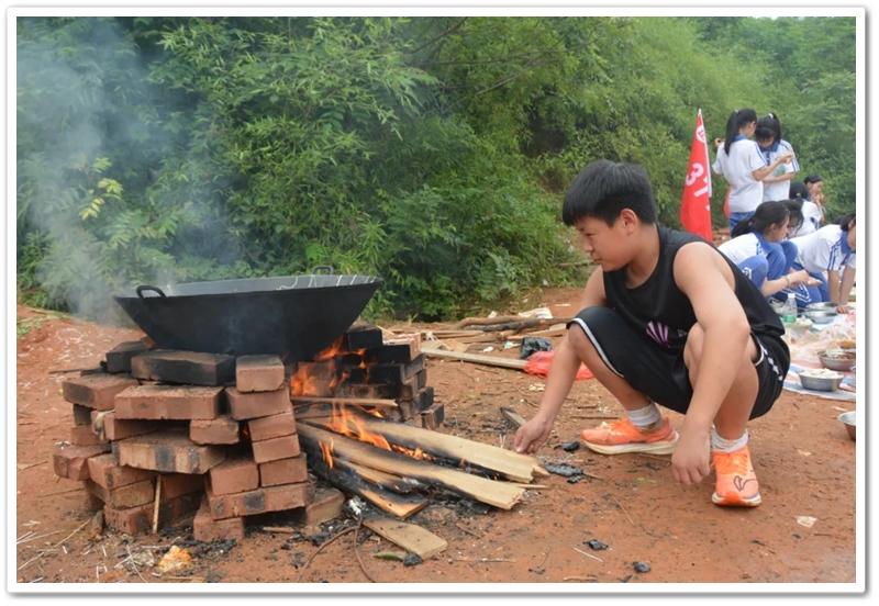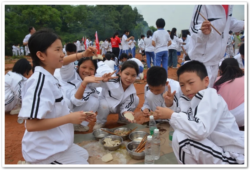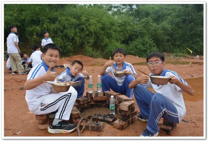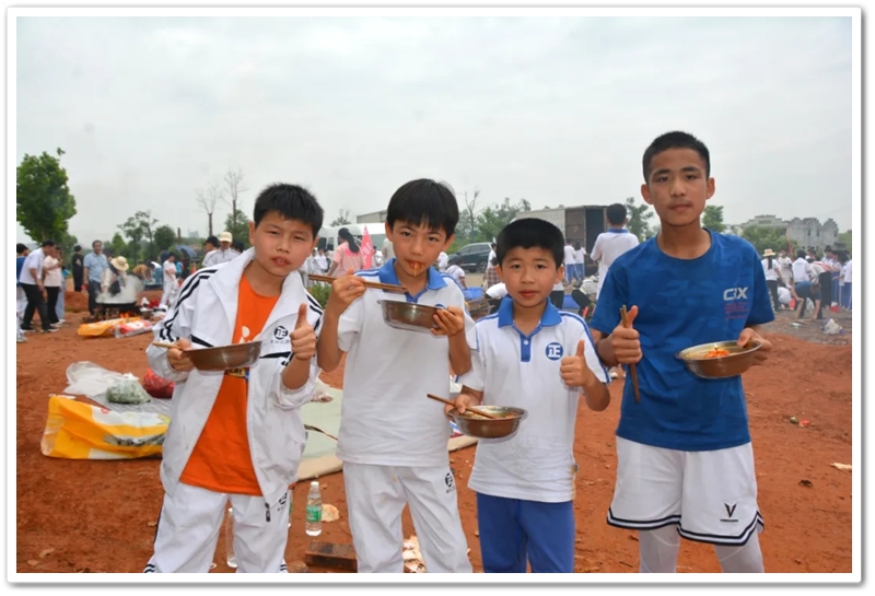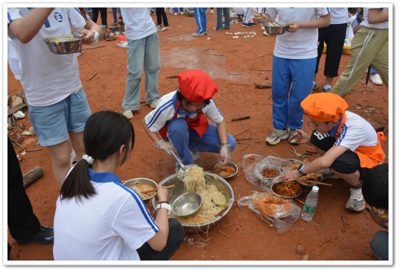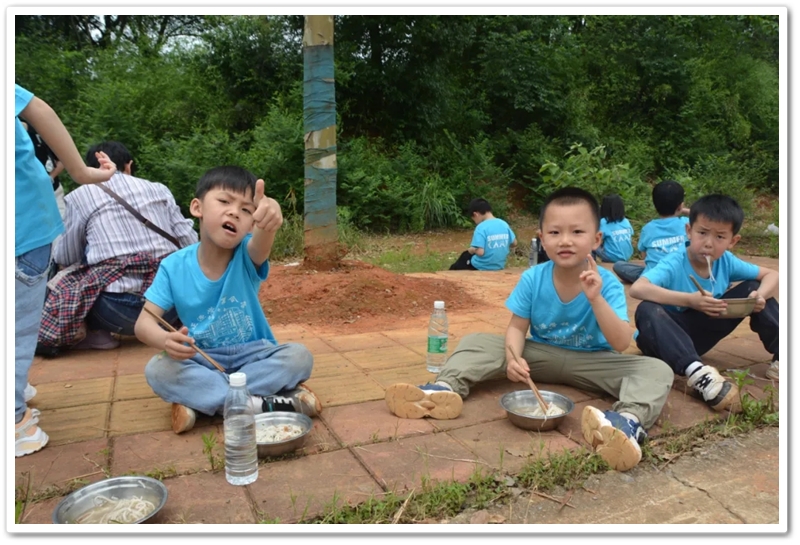 11点,队伍陆续进场,迎接我们的是热火朝天和热闹非凡。后勤部和生活老师早早就到达了野炊地点,顾念孩子年龄较小,他们早就领好了物资,搭好了灶台,洗好了锅,烧好了火,煮沸了水,只等我们的学生一到,就可以下面条煮啦。这时,我们的小小厨师登场,他们是各班推选出来的能手,想在这样的集体活动中大展身手,为同学煮一顿美味可口的面条。但看到锅里那张牙舞爪的滚烫的沸水,班主任们坐不住了,纷纷上场。于是,小厨师们又成了小助手,他们退到安全地带,时不时给班主任递上一种调料,或远远的撒上一把葱花。其他的同学呢?或打水,或分碗筷,或包饺子,总之忙的不亦乐乎!味道如何?好多孩子吃了两大碗面条和一碗饺子哩!学校还准备了新市圆子和黄瓜作点心。吃饱喝足后,同学们就开始找乐子,最受瞩目的就是那个户外音响了,同学们可以自由点歌,想唱就唱,拿上话筒,你就是全场最靓的崽!
