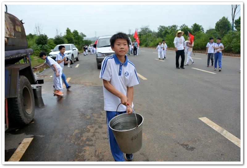 2点半,我们开始返程。上山不难,下山也易。像来时一样,同学们撒了欢似的一路高歌猛进,说说笑笑,走走停停,不知不觉,就到了水东江地界,再次领了补给,经大桥路口,过华毅大桥,一转,就回到了正源学校。