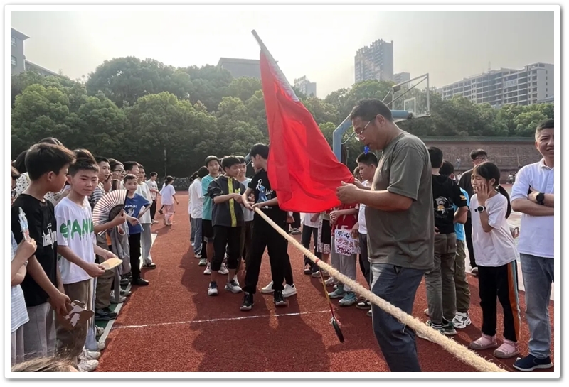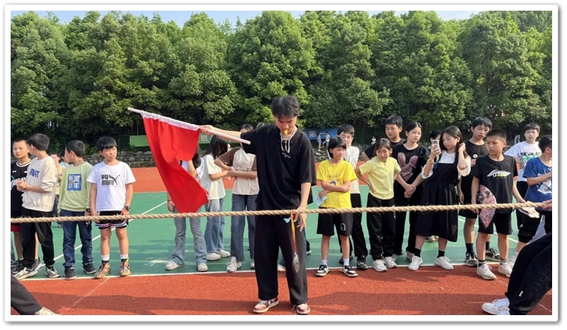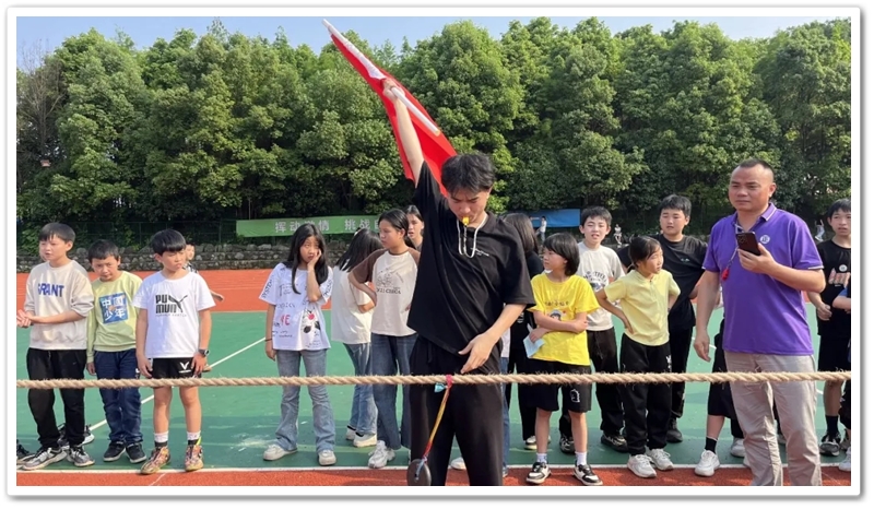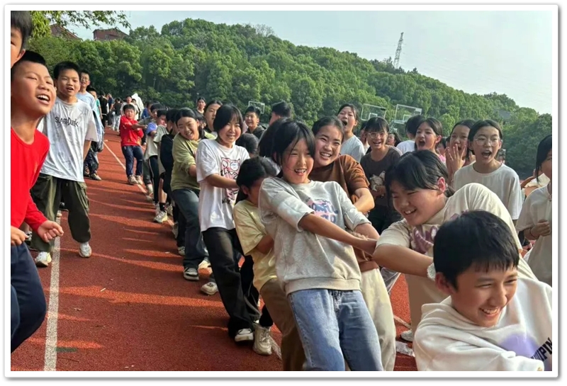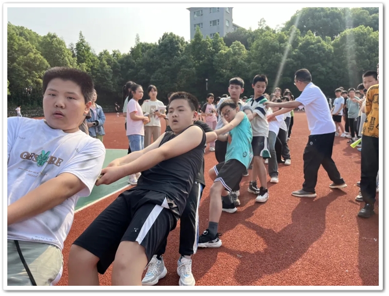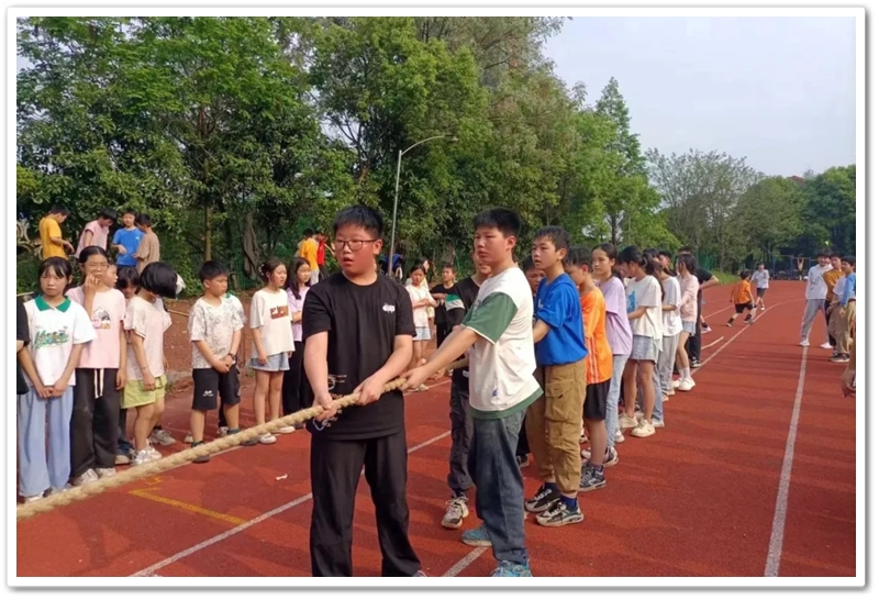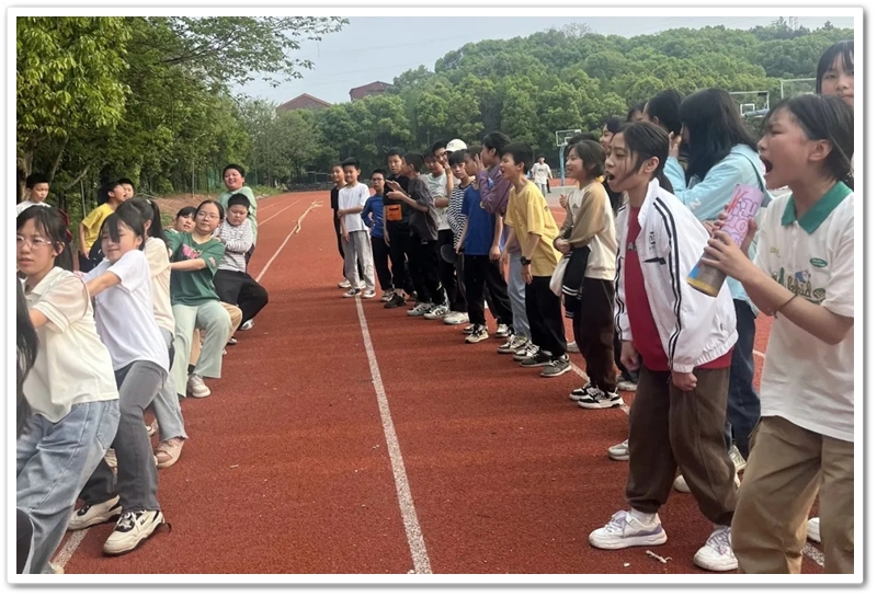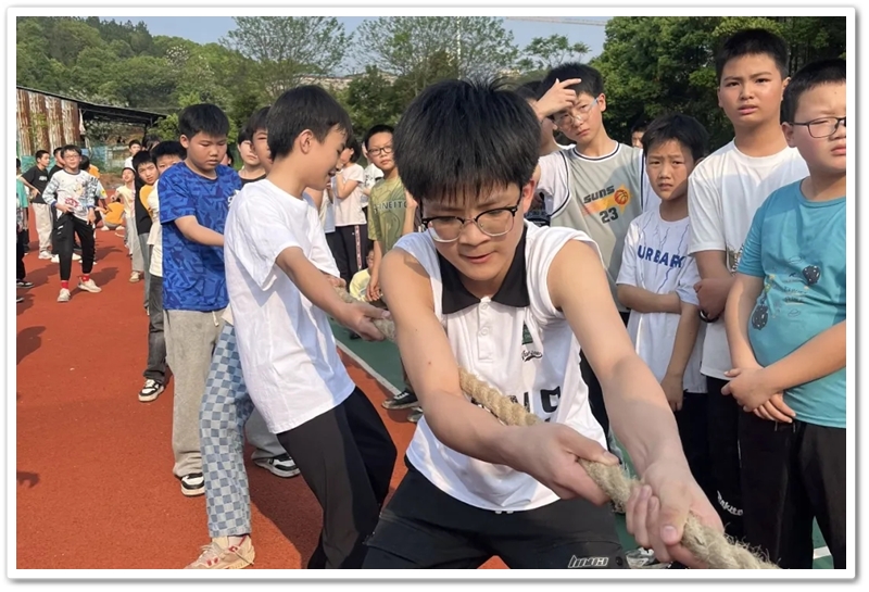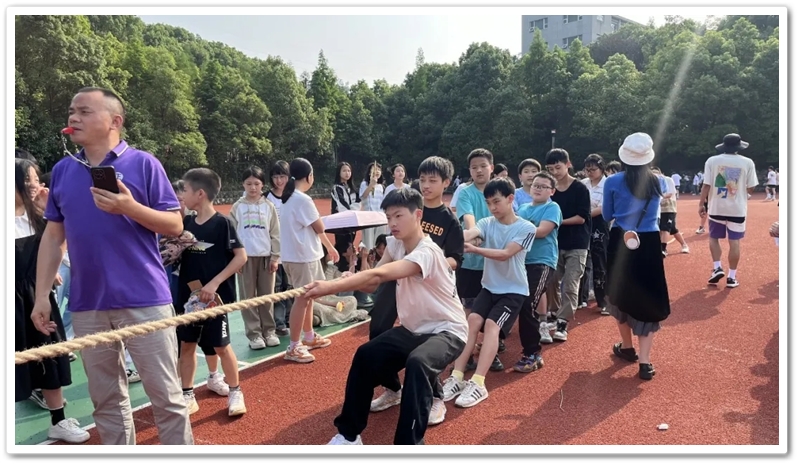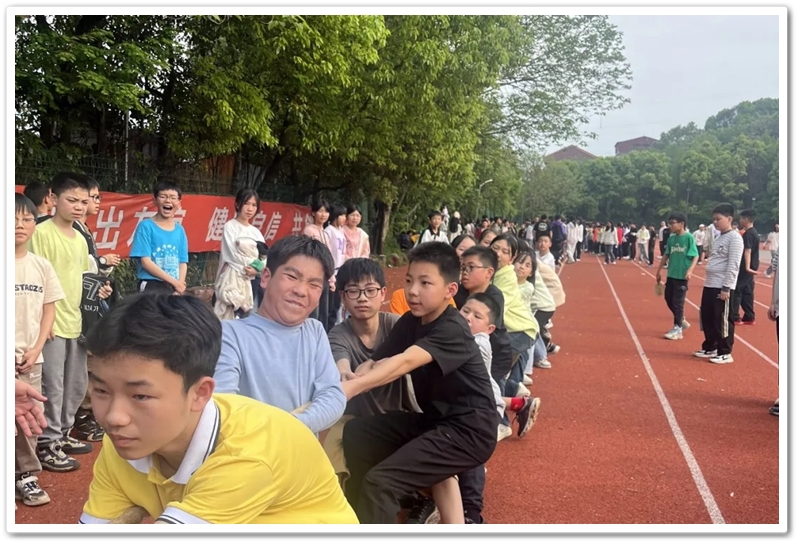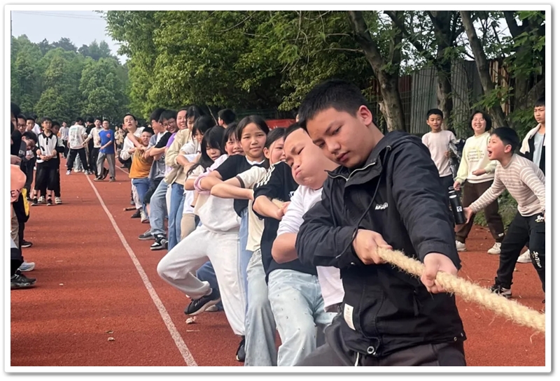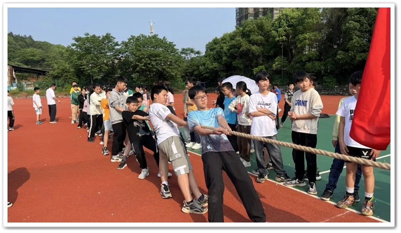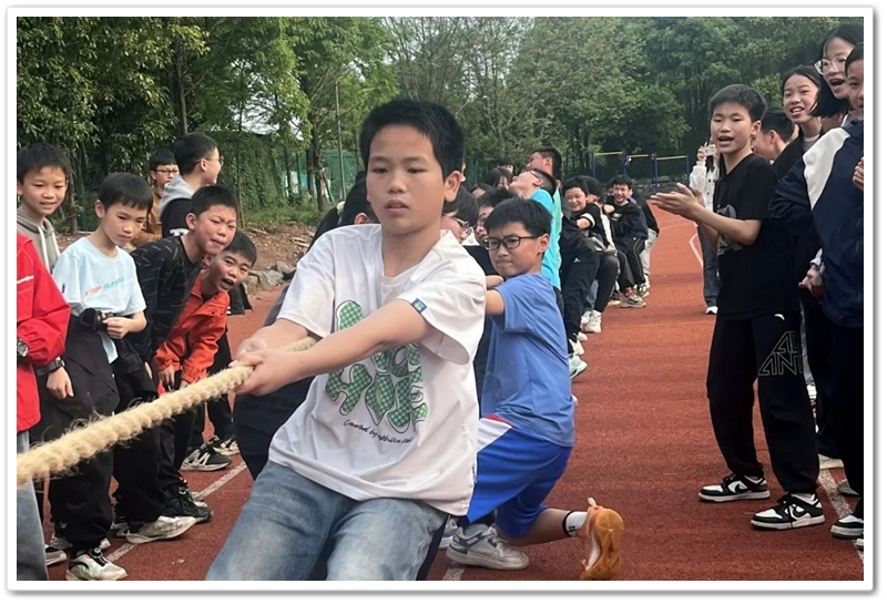 一声清脆的哨响拉开比赛的序幕,运动员们展开了激烈的比拼。拔河的赛场上,准初一的少年们展现出了惊人的活力和热情。他们紧握绳索,全力以赴,心往一处想,劲往一处使。他们用行动诠释了“团结就是力量”的真谛。每一次的拉扯,都是对团队默契的考验;每一次的呐喊,都是对胜利渴望的表达。