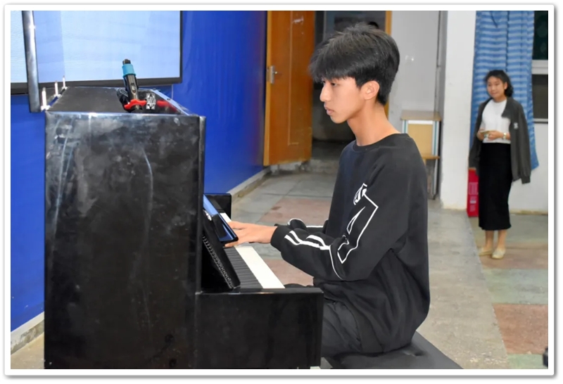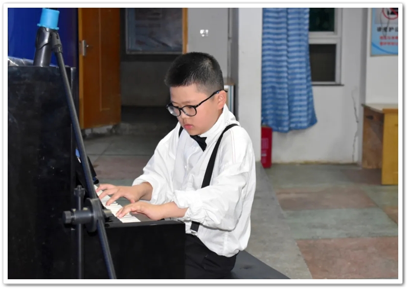 第五位选手是准初一年级602班王子滔同学,作为初中部年龄最小的入围者,他演奏的曲目是《放马曲》,这首乐曲是作曲家沈传薪根据云南民歌《放马山歌》改编的钢琴小品,具有浓厚的云南少数民族风格。生动表现了牧民放马时的欢快意境,节奏轻快活泼,曲风天真烂漫,王同学以他扎实的功底征服了各位评委老师,拿下了本次比赛初中组的一等奖。