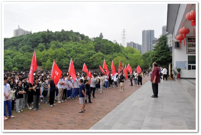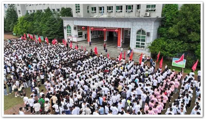 有志者事竟成,有恒者攀高峰。上午10时,广场前人头攒动,彩旗猎猎,场面壮观,全体高三师生集结待发。