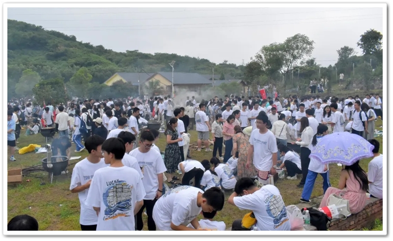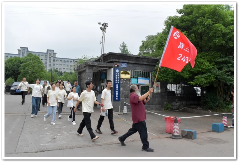 在资主任的带领下,全体高三学生齐呼:“高考必胜!”远足野炊活动正式拉开序幕。