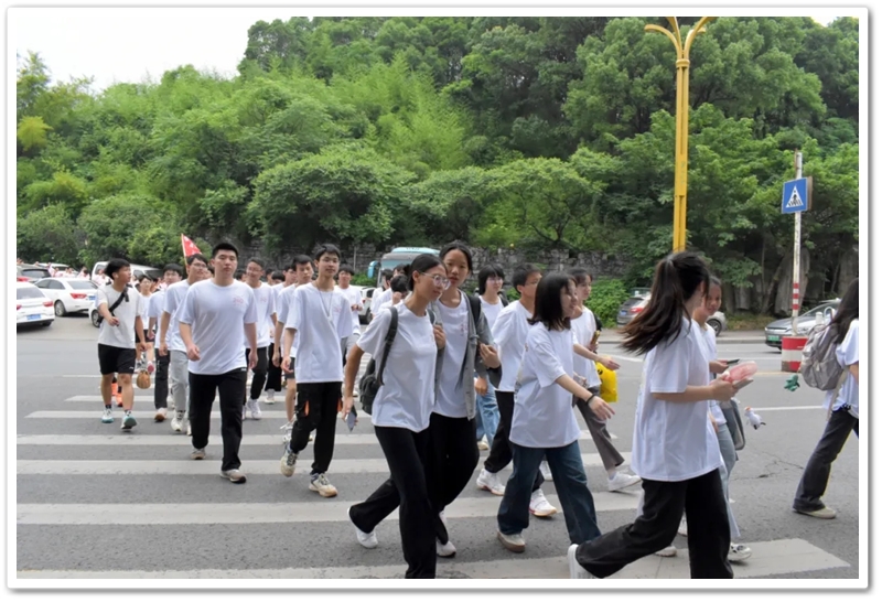 踏浪前行风正劲,不负韶华争朝夕。本次远足活动,师生自学校南门出发,他们用脚步丈量青春的长度,用汗水刻下奋斗的足迹。伴随汗水的还有备战高考的沉重压力。减压放松,轻装上阵。一路上,远足队伍如长龙一般,师生们始终精神抖擞,步伐坚定,欢声笑语不断,这正是新时代正源人的昂扬激情。