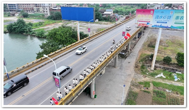 经过一个小时的短途跋涉,同学们来到了一个小关卡——京珠高速公路下穿桥洞。桥洞不算深,但略显阴暗。洞内,每隔一段距离,就有老师站在沟渠上打着手电筒为同学们照明,同学们相互扶持一步一步走出桥洞。出了桥洞,豁然开朗,微风习习,满眼青翠,朵朵小雏菊在微风中翩翩起舞,恍如来到了世外桃源。旁边有人笑着说,这个桥洞就是黎明前的黑暗!确实,桥洞虽黑,终究会迎向光明;高考虽苦,有了正源全体教职员工的保驾护航,我们终将一鼓作气,迎来胜利的曙光!