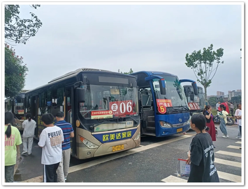 6月6日下午2点,正源校园风清气爽,鸟语花香,2094名考生,62台大巴,浩浩荡荡奔赴耒阳一中、二中、实验、职高、杜甫5个考点踩点演练,熟悉考场。