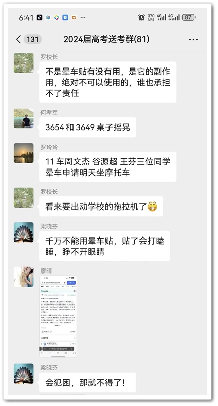 在此,也特别提醒其他学校考生及家长们,若是晕车,一定要对晕车贴的副作用引起充分重视,尽量避免使用,以免造成难以承受的遗憾。