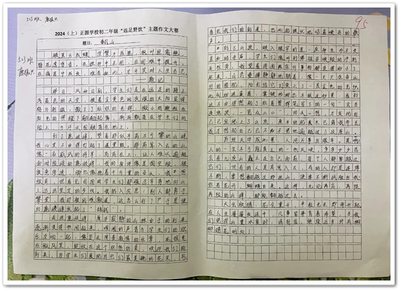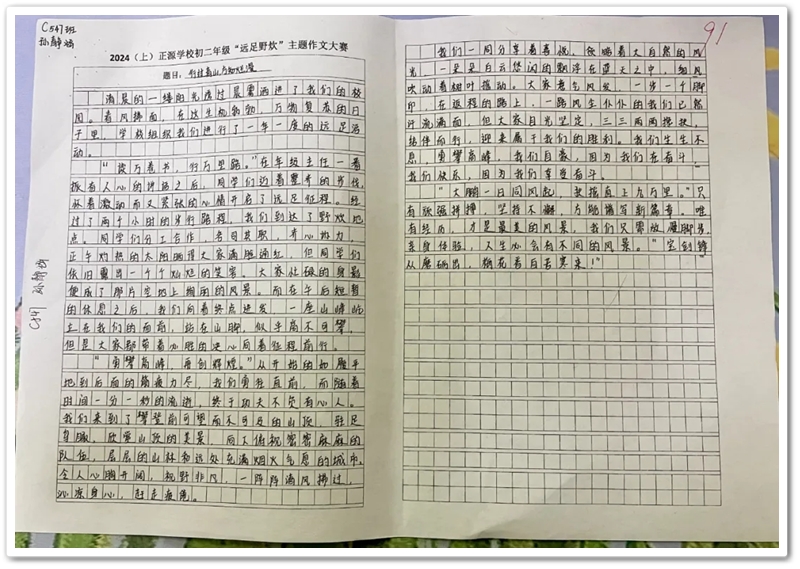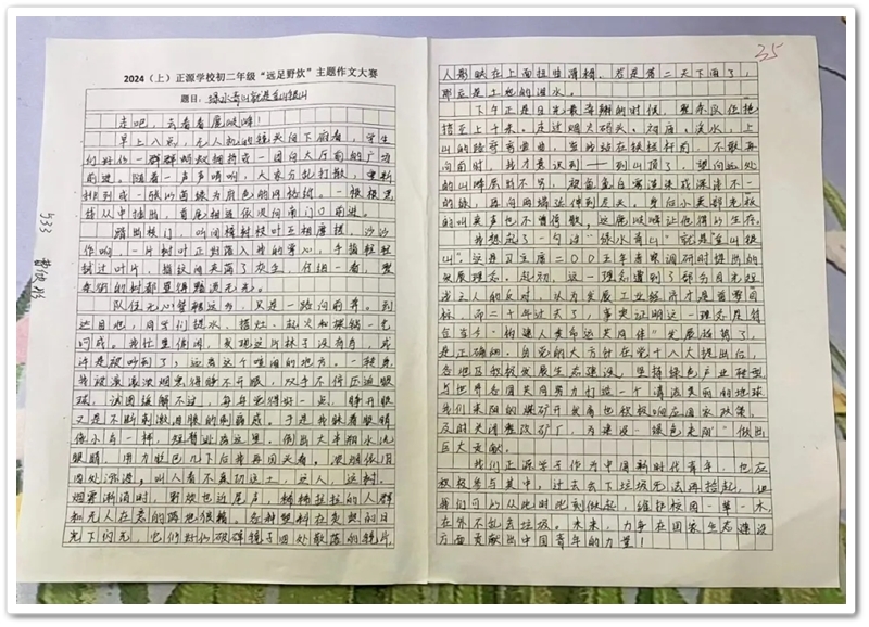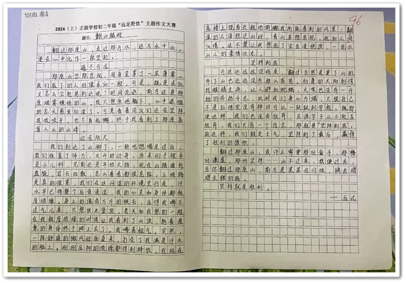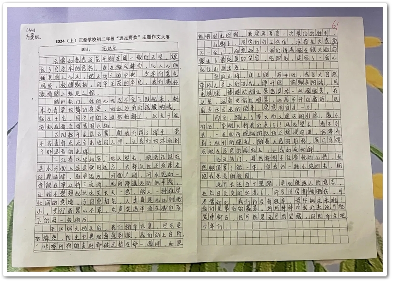 笔墨绘远行,妙笔抒真情——正源学校初二年级“远足”征文比赛活动