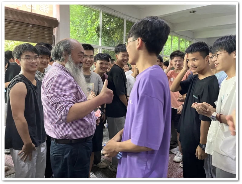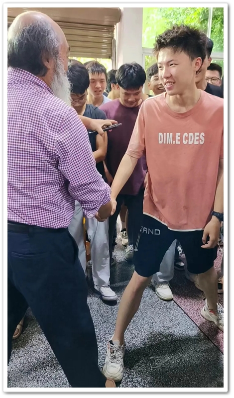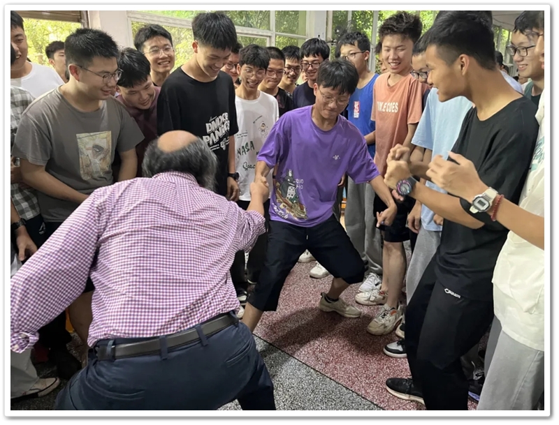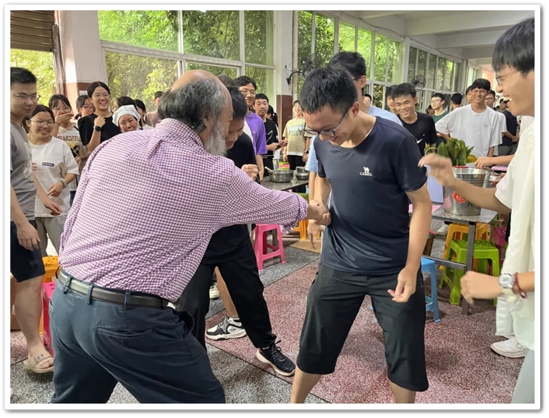 有个家伙故意用劲握校长的手,须发银白的罗校长撸起袖子,问他是不是想切磋切磋?说着扎起马步,侧身前倾手腕一抖,施施然亮出一套练家子架势——62岁的罗校长,要跟眼前这帮17岁的壮小伙玩平衡角力游戏。