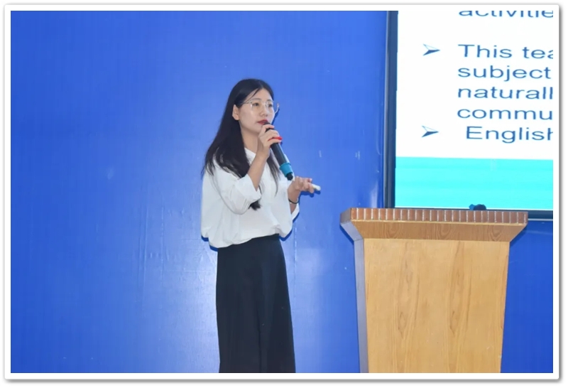 谷杨梅老师分享了“沉浸式英语教学”。谷老师先从定义,教学原理与原则解释了“沉浸式英语教学”,并与传统教学进行了对比。然后给出了具体的教学建议和方法。