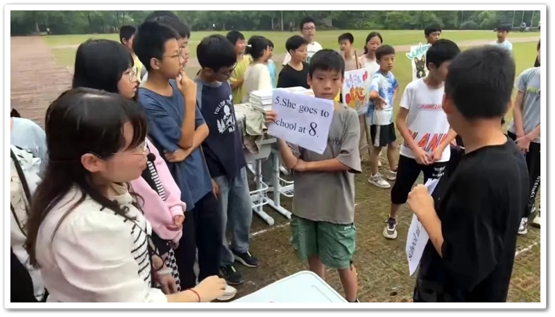 在活动现场,学生们积极参与,热情高涨。他们充分发挥自己的英语能力,与同学们展开激烈的竞争。每通过一关,他们都会兴奋地拿到盖章,然后继续挑战下一关。整个活动现场充满了欢声笑语和加油助威声。
