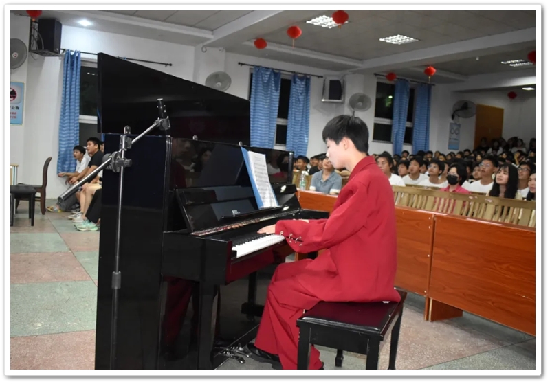 轻快的音乐响起,一段充满青春活力的舞蹈表演拉开了本次活动的序幕。王子轩、陈永康两位同学的双人说唱《Mom》紧接在后,现场气氛瞬间点燃;李谦同学、李康乐同学分别演唱了歌曲《退后》《无名的人》,深情款款,打动着每一位观众;杨昌忠老师和艺术部合唱团共同演绎的歌曲《萱草花》,则向大家展示了什么叫做专业。舞蹈《直到那一天》《show》《Dingding》,王欣、罗梓灵、文佳妍几位同学的舞姿,或曼妙优雅、婀娜多姿,或动感十足、热情大方;由袁雯慧演唱、谢鑫萍表演的合作歌舞《浮光》,配合默契,用舞蹈和歌声绽放她们的青春。极具创意的小品《戏精导航》《艰难抉择》,以幽默风趣的动作、诙谐调侃的语言令观众捧腹大笑,掌声不断。刘纪翔同学的钢琴独奏《北风吹》,张欣悦同学的古筝独奏《林冲夜奔》,李凤、李丹、熊芷杰等人的古筝合奏《丰收锣鼓》,琴声悠扬,筝音袅袅,时而轻柔如丝,时而激荡如潮。