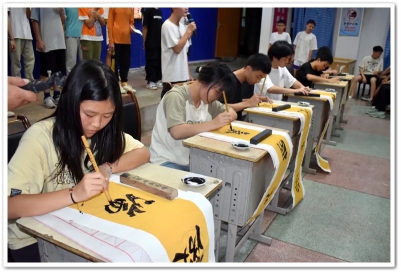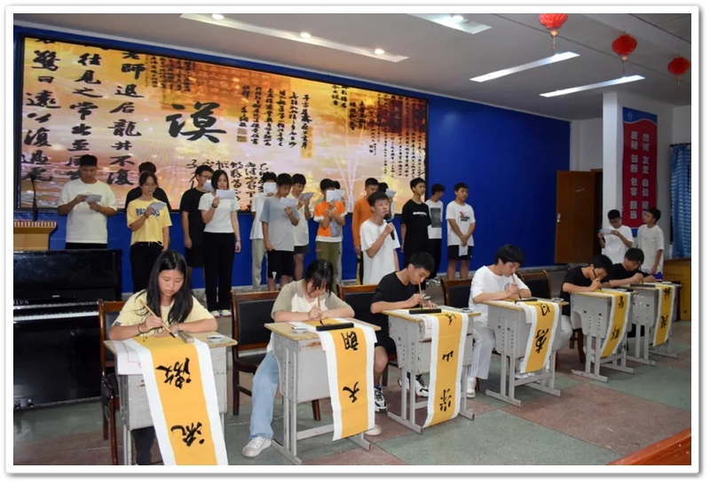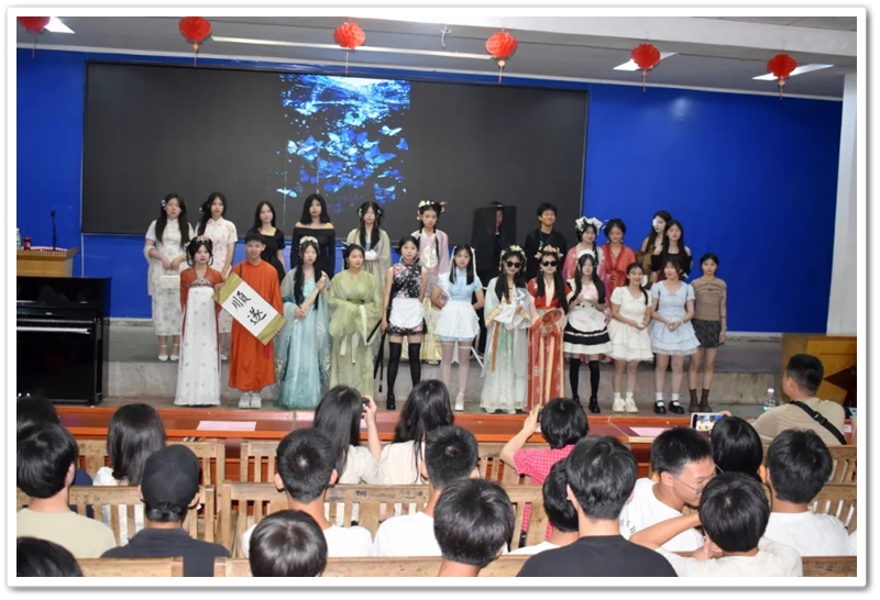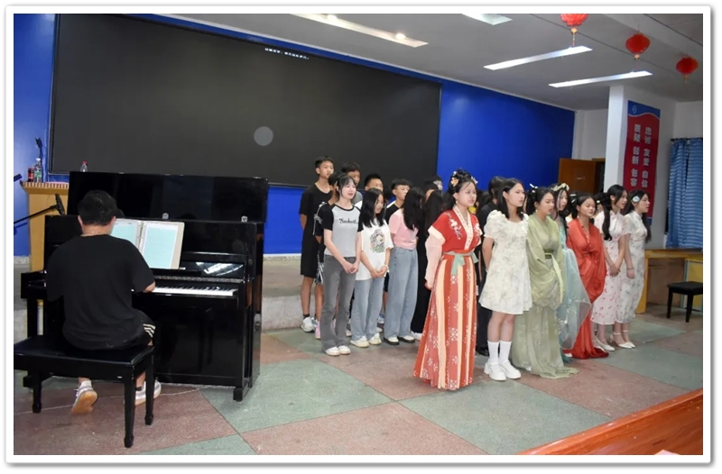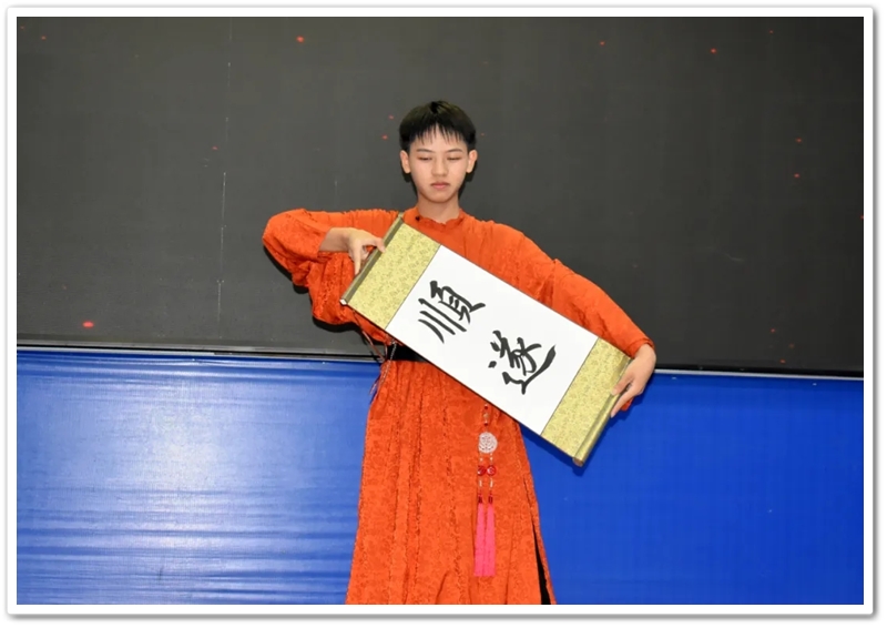 歌舞器乐洗涤心灵,览书品画陶冶性情。本次活动延续了第一期的传统——赏画落墨。伴着刘礼凯同学弹奏的舒缓钢琴曲,一幅幅优秀美术作品接连展出,诠释艺术生心中《Time to love》的含义。与以往不同的是,这一次的书法展示不仅有书法生展笔挥毫,还有人声伴唱、团体朗诵,同现场观众一起穿越时空,与王羲之《再会兰亭》。科任老师与初三学生的服装走秀,将传统与现代巧妙融合。汉服、旗袍、新中式、Lolita,不同风格的服饰擦出激情的火花,尽展风华。作为压轴出场的节目《再见》,则是由艺术部全体师生携手合唱。高亢激昂的歌声下,深藏着对即将毕业的初三同学的不舍和祝愿。