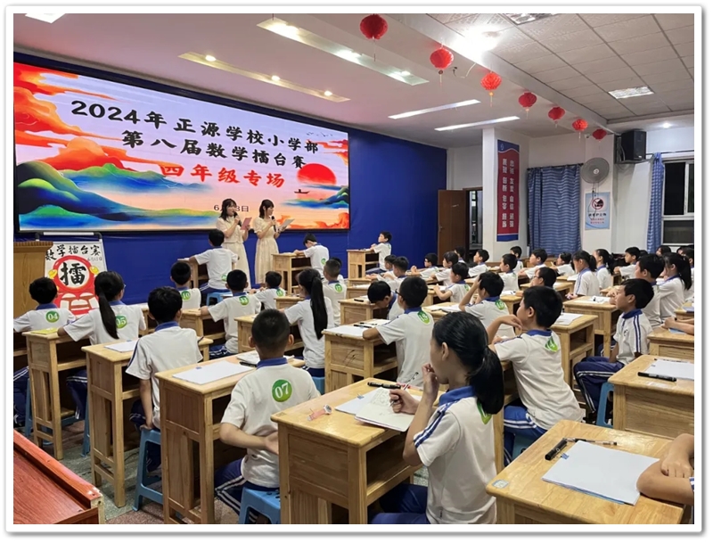 6月的正源热情似火,激情满满。正源的高考刚刚结束,又迎来了小学部的数学擂台赛。6月13日晚7点,正源学校第八届小学部数学擂台赛四年级专场,在学校报告厅拉开序幕。